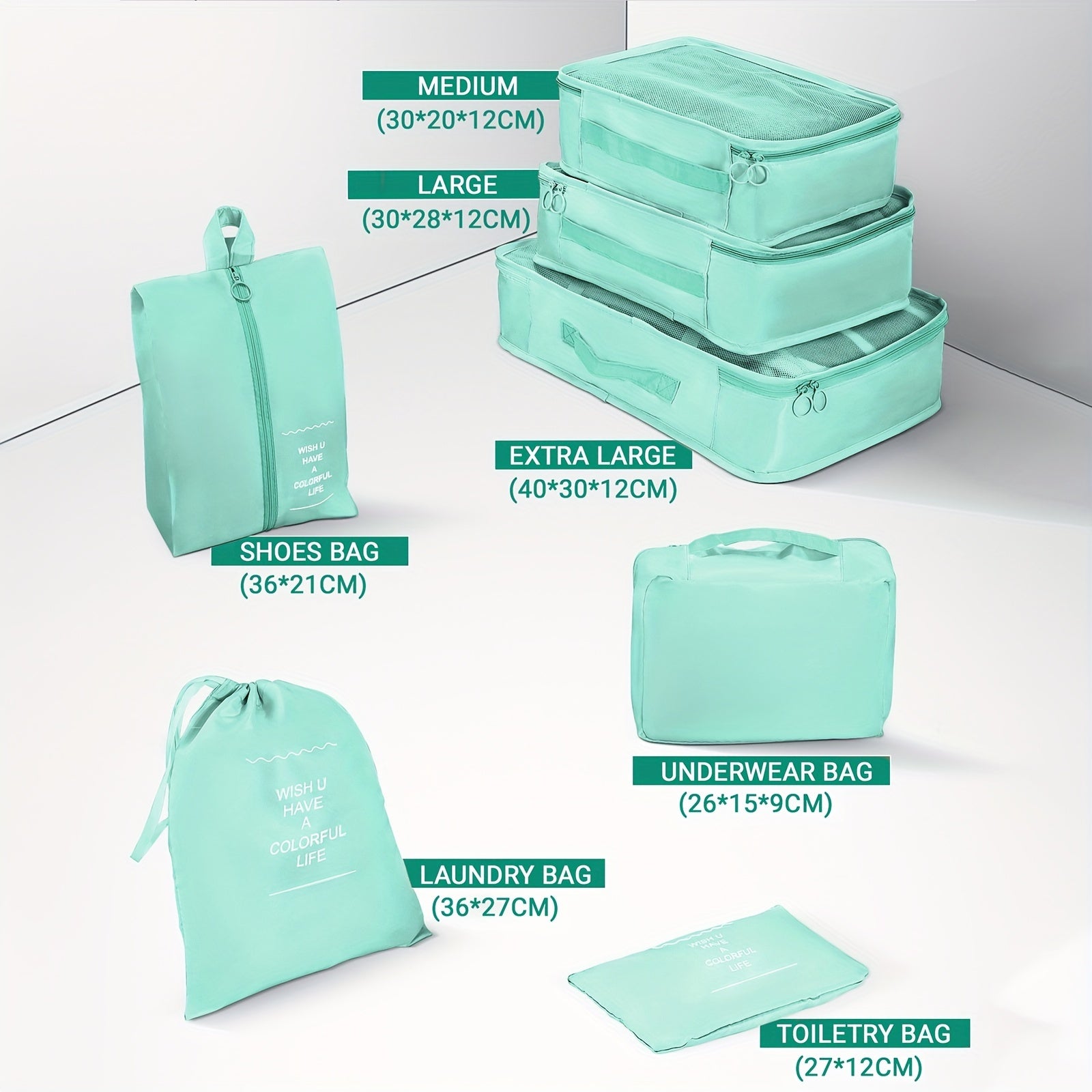 Ten Piece Luggage Set (3*Luggage+7 Storage Bag), Large Capacity Luggage With Telescoping Handle, Extra Thick ABS Durable Hardshell With Double 360° Spinner Wheels, Dopamine Color And Back-to-school Season Student Luggage
