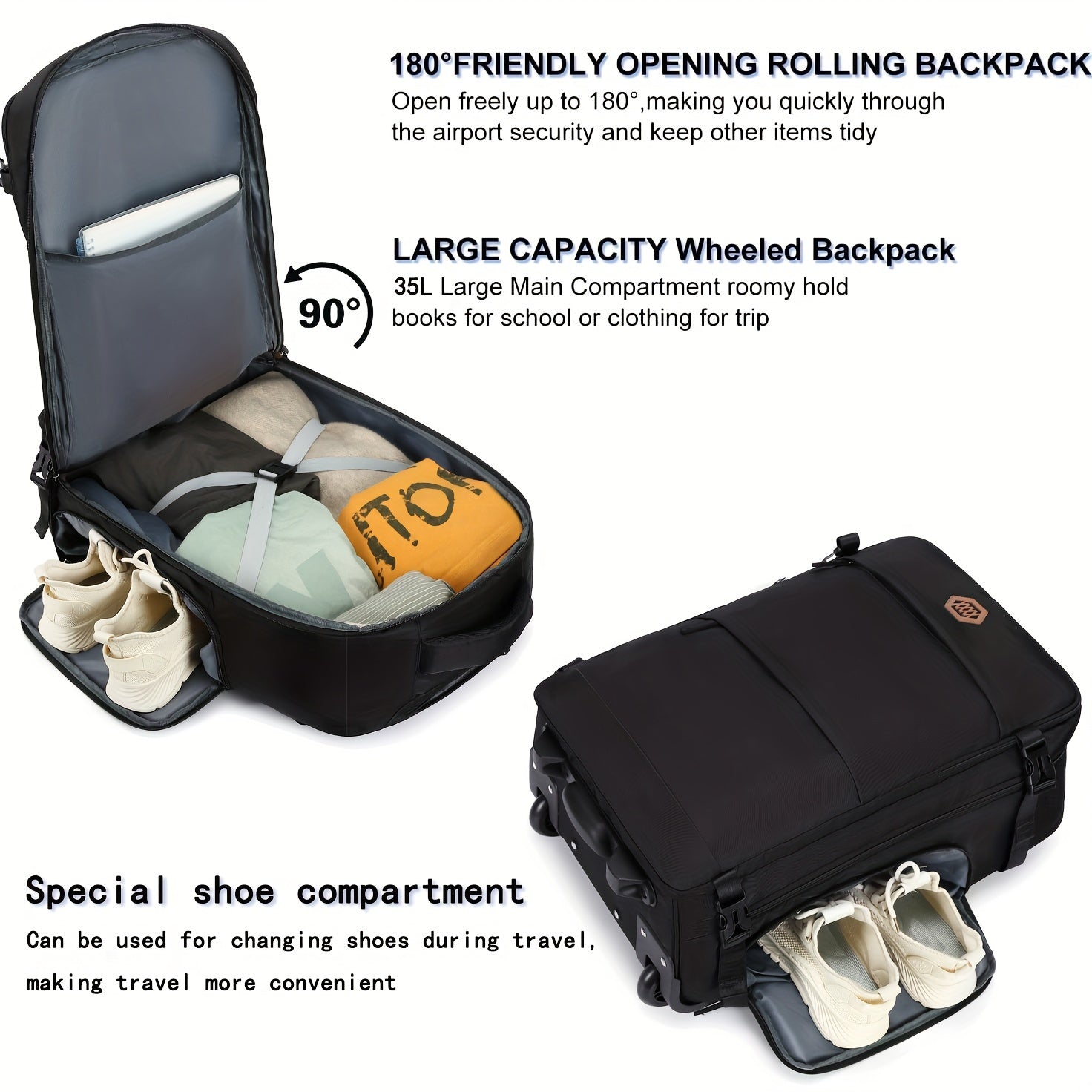 17-inch Wheeled Travel Laptop Backpack - Large Rolling Backpack For Men And Women - Carry-on Luggage Bag, Business School Computer Backpack, Back-to-school Season Backpack