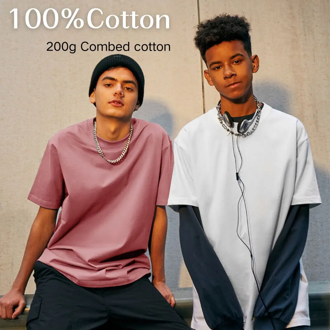 200G 100% Cotton T-shirts For Men solid color Oversized Basic T Shirt Drop-Shoulder Tshirt Streetwear Tops monochrome Tee