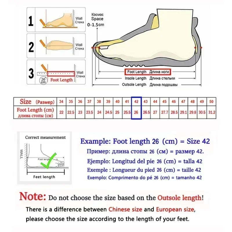 Please note: When purchasing a size, please measure the length of the foot and choose the size according to the length of the foot. Friends with wide or fat feet are recommended to choose one size larger!