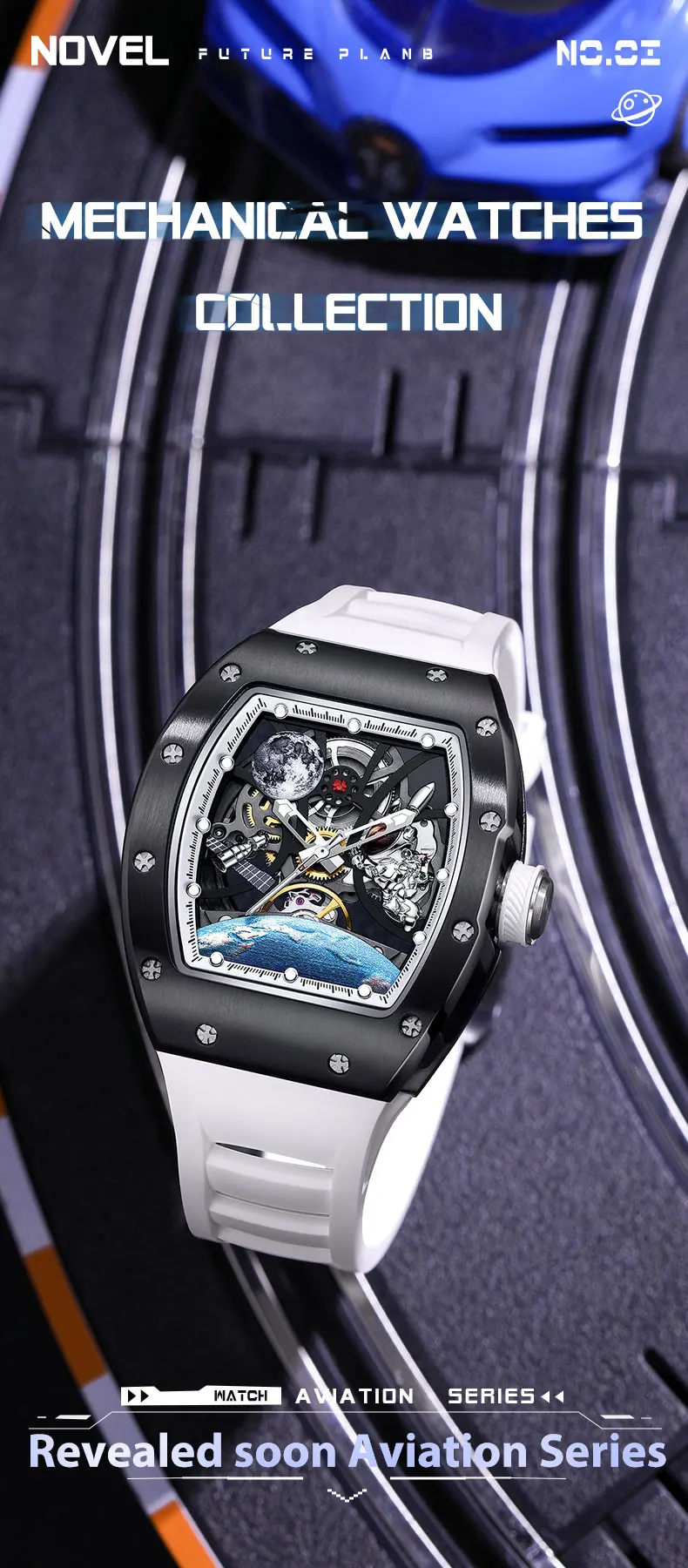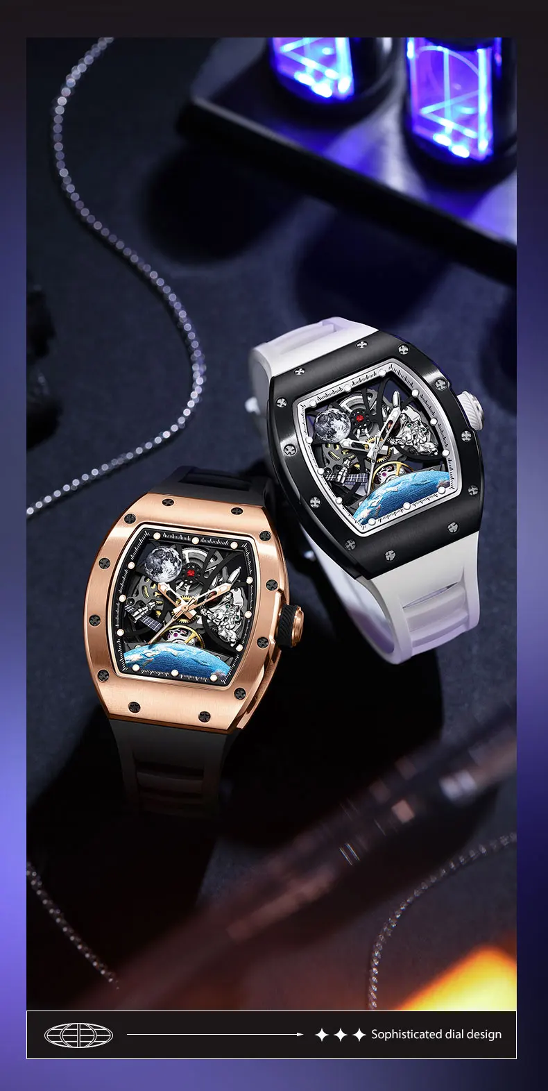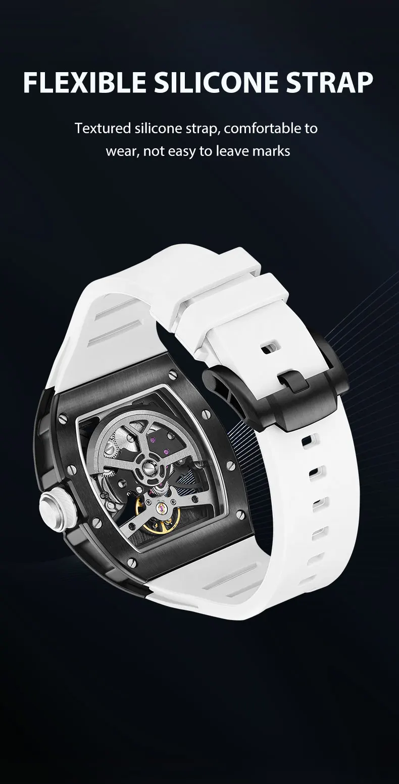 2025 High Quality Men's Automatic Watch with Stylish Sports Silicone Strap Waterproof Mechanical Watches for Active Lifestyles