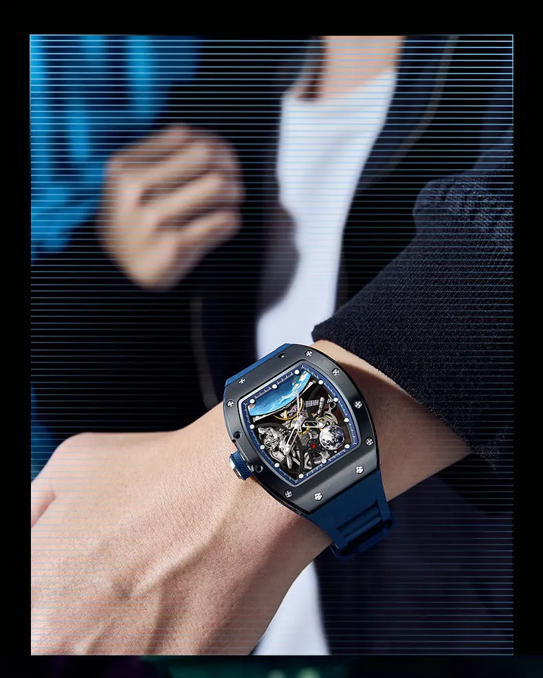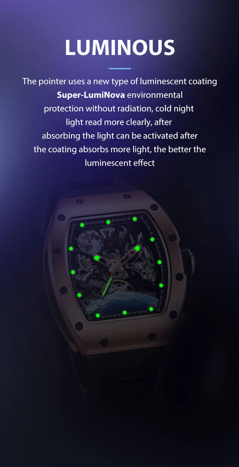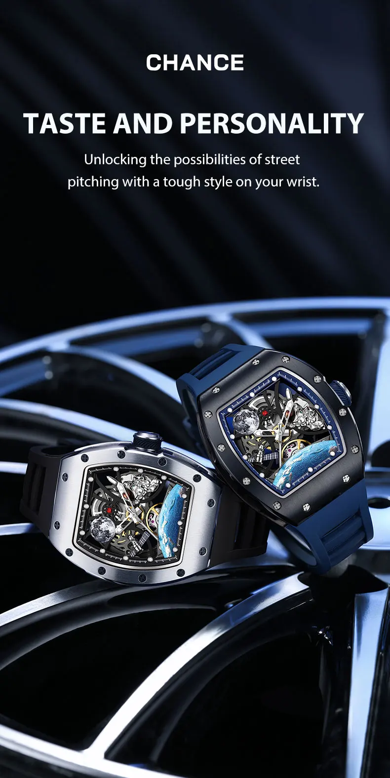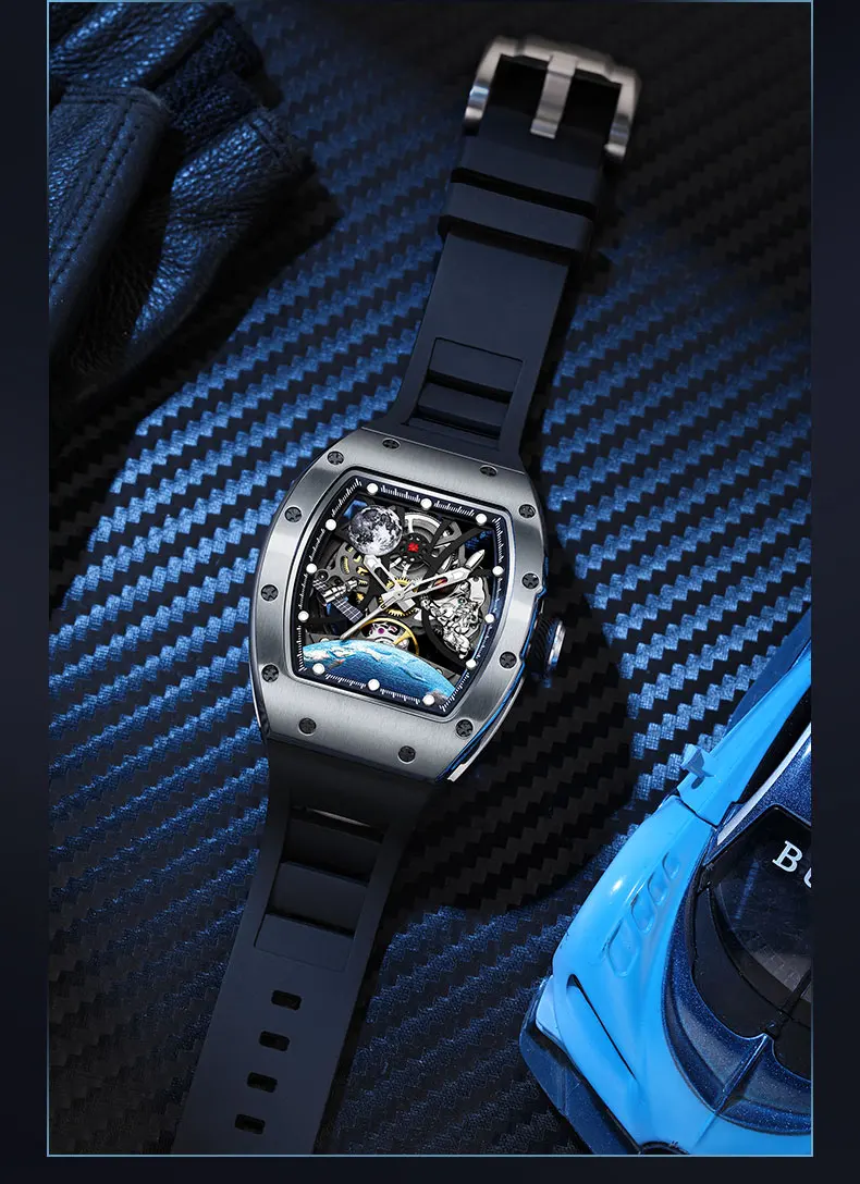 2025 High Quality Men's Automatic Watch with Stylish Sports Silicone Strap Waterproof Mechanical Watches for Active Lifestyles