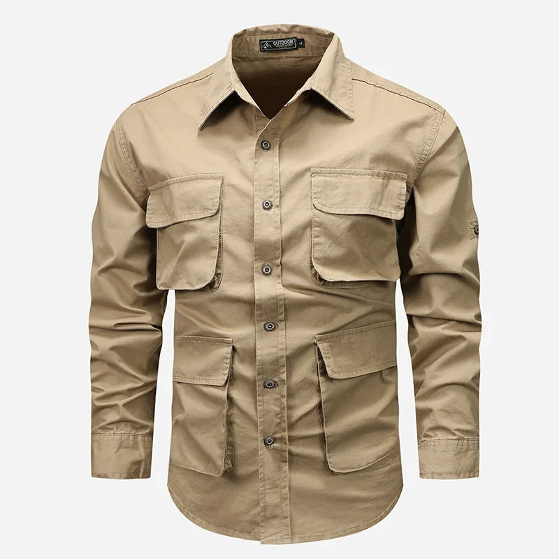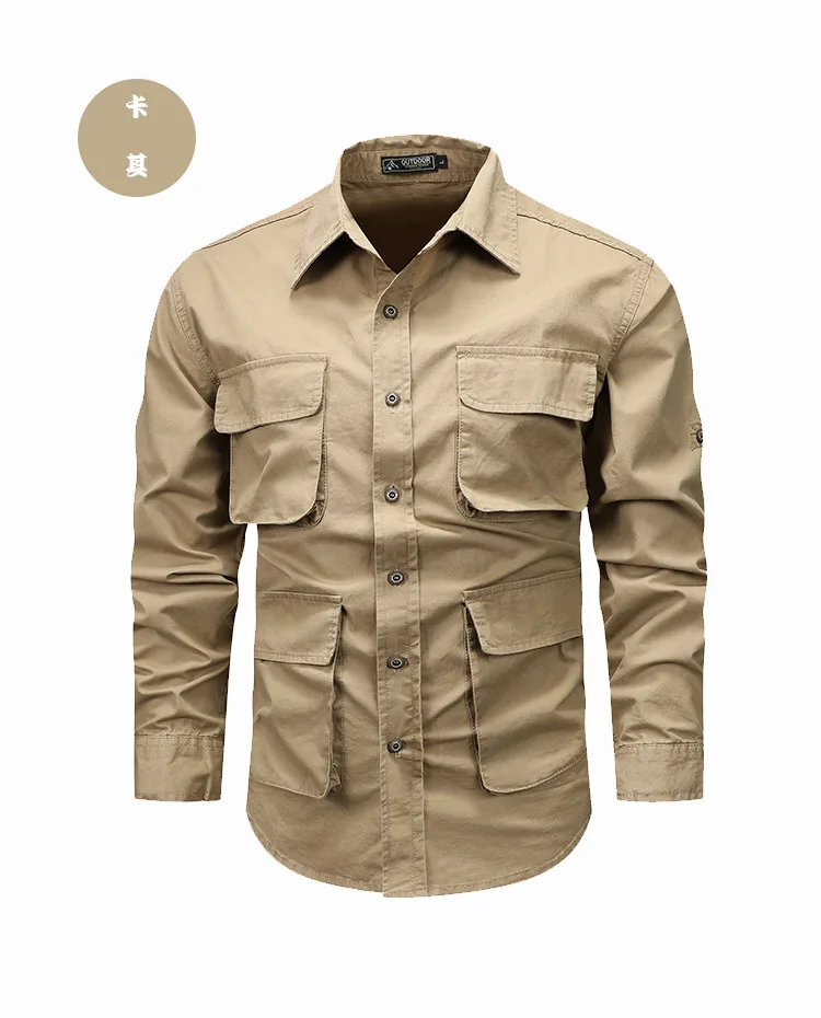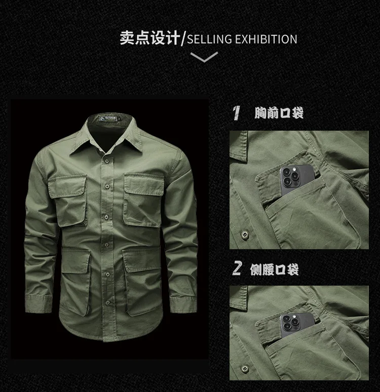 2025 new new men's long-sleeved shirt autumn and winter youth casual overalls fashion trend solid color shirt top