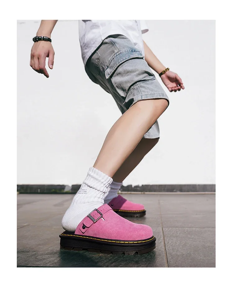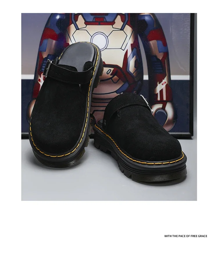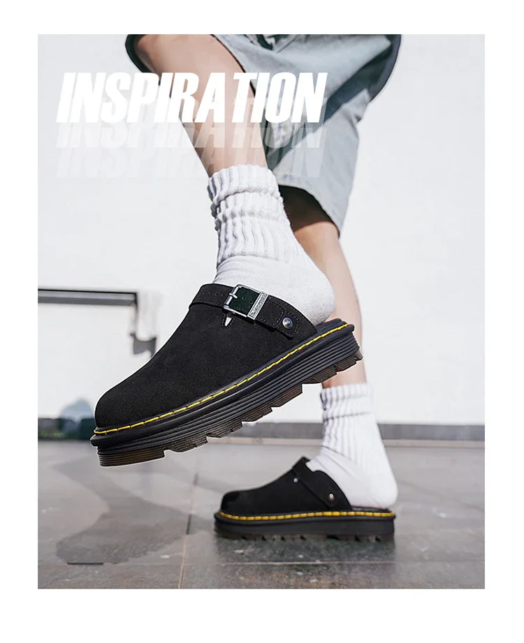 2026 Men's Slippers Fashion Big Leather Casual Slippers Summer Half Slippers for Men Non Slip Beach Shoes Classic Clogs Shoes