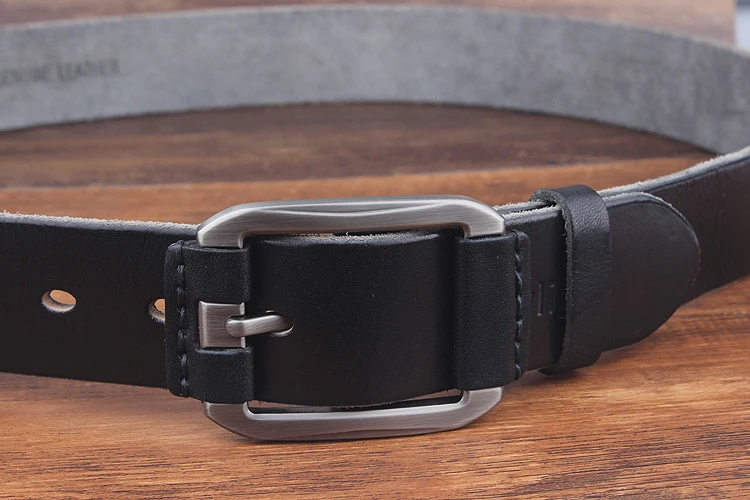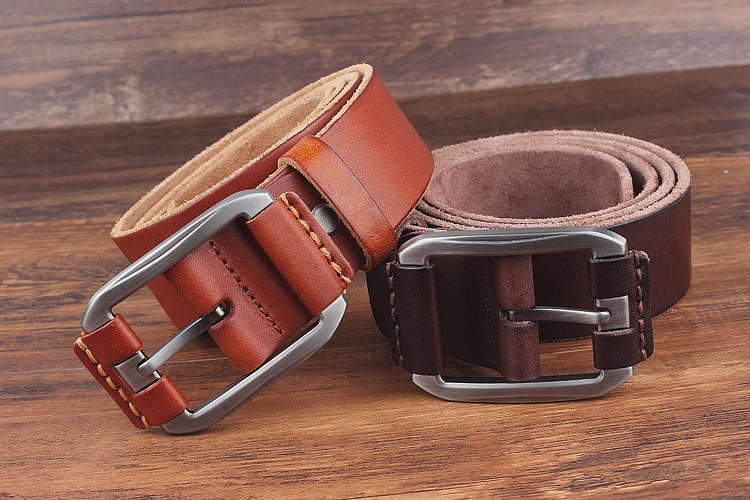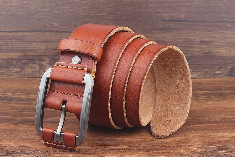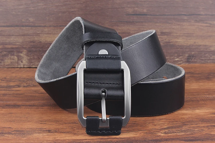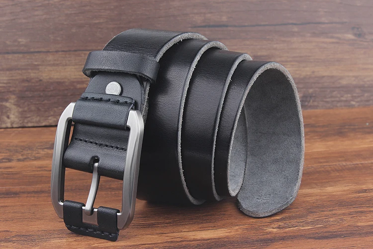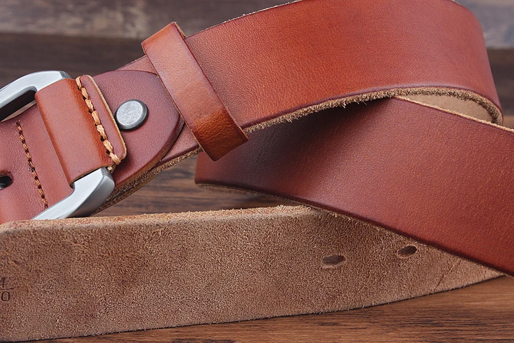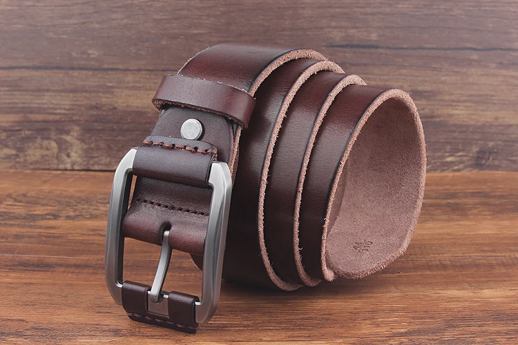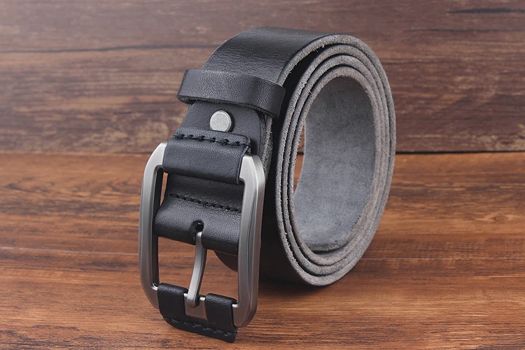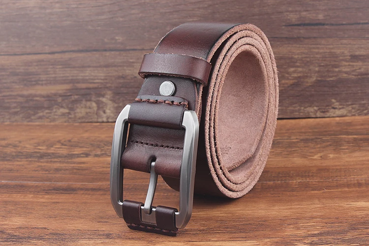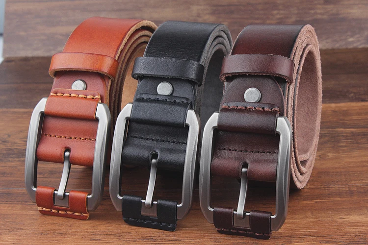 3.8cm Width Thick Men Retro Genuine Leather Belts Copper Pin Buckle Cowhide Business Belt High Quality Male Waistband
