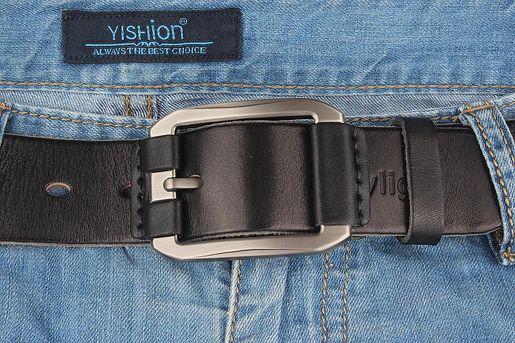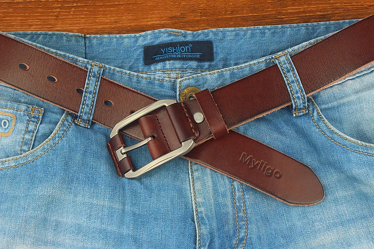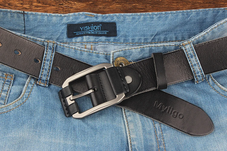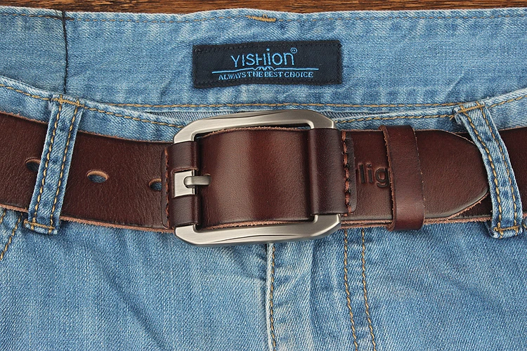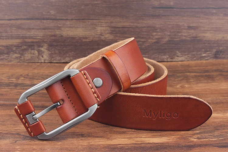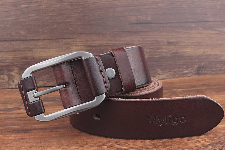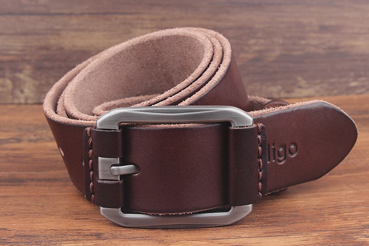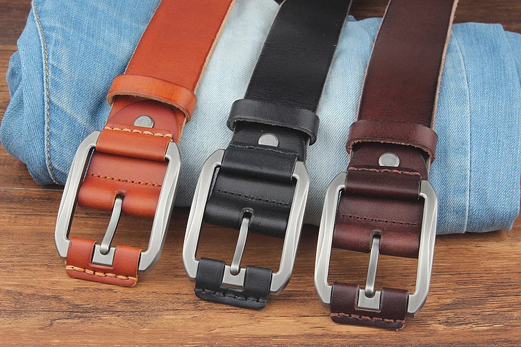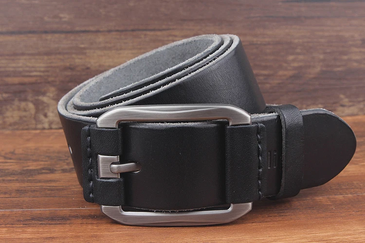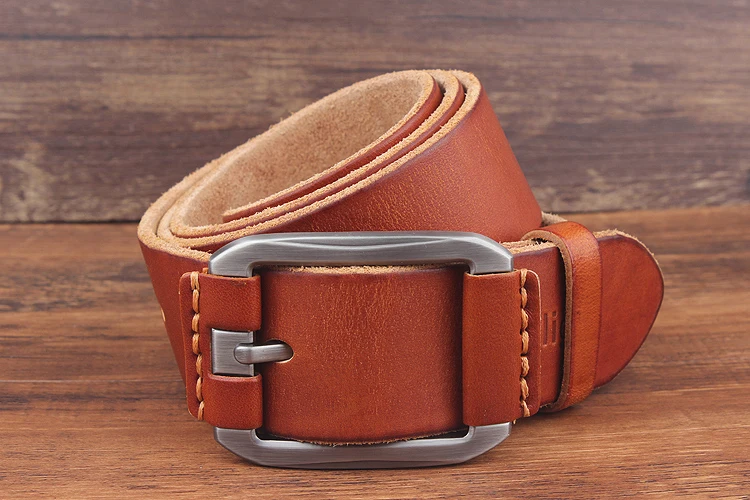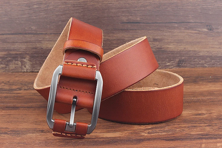 3.8cm Width Thick Men Retro Genuine Leather Belts Copper Pin Buckle Cowhide Business Belt High Quality Male Waistband