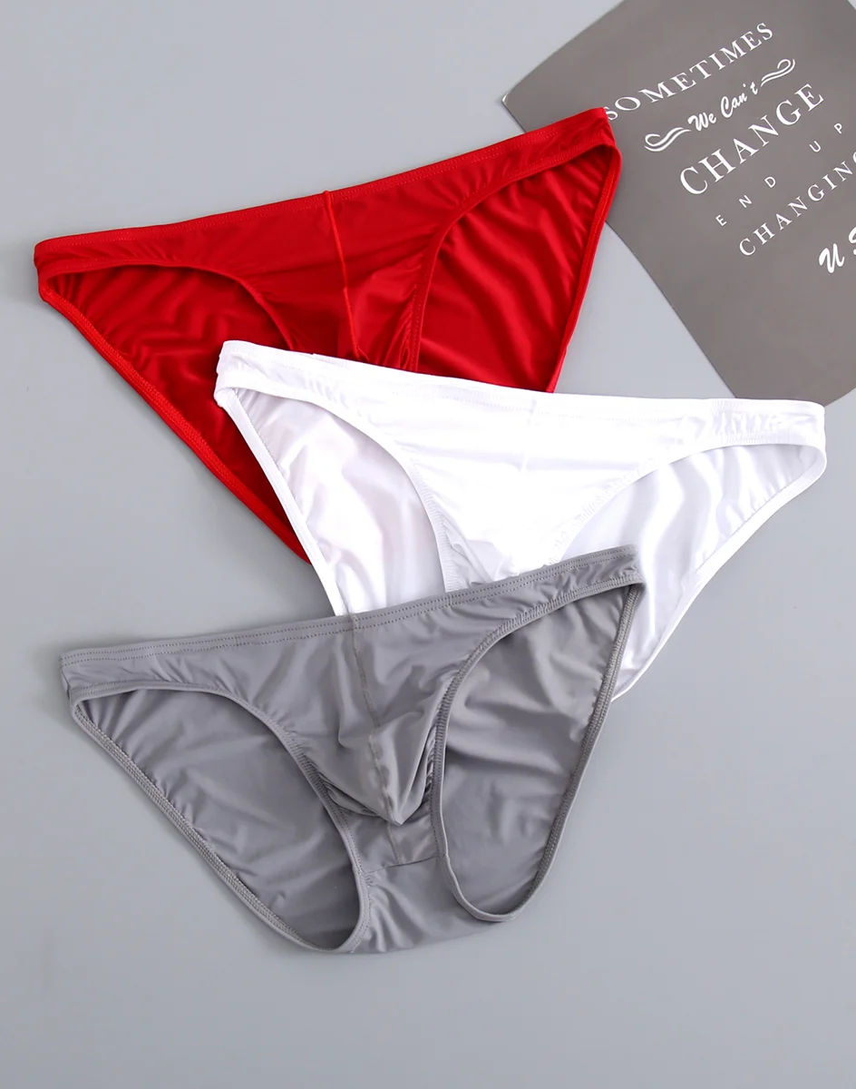 3 Pcs Mens Underwear Briefs Nylon For Men bulge with Pouch hombre slips Red Boys pack lot Breathable and sexy Male Panties