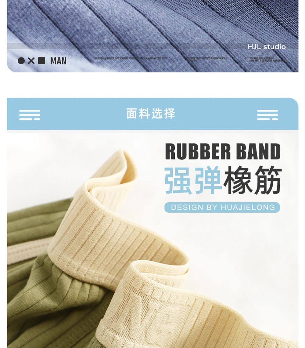3PCS/Pack 100% Cotton Solid Striped Men's Boxer Sexy Breathable Mesh U Crotch Underwear High Elastic Widen Waistband Underpants