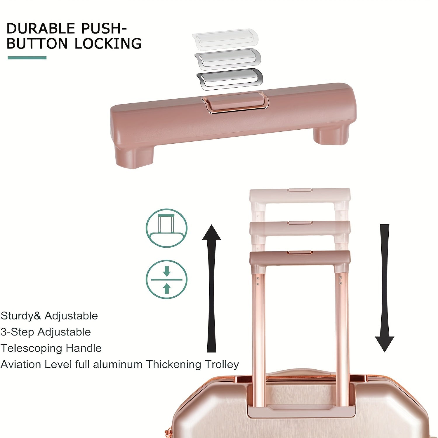 【Side Handles】Adjustable 3-stage telescoping handle can reach your suitable height