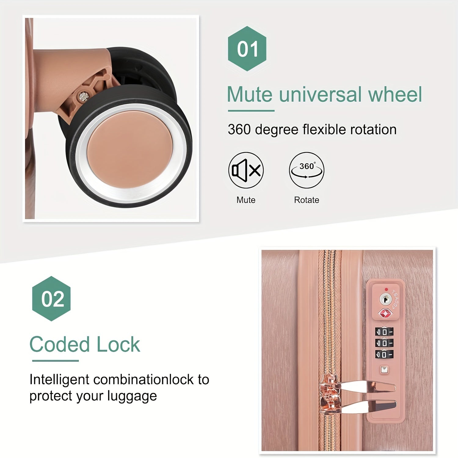 【Suitcases with Spinner Wheels】 With four 360-degree multi-directional rotating wheels, the luggage set could move smooth and silent, allows you to use it more convenient and move any way you want.