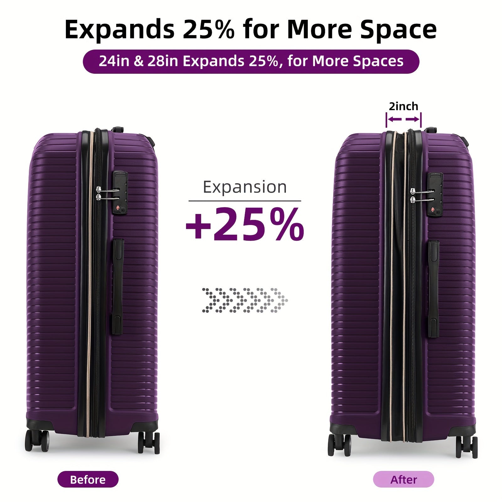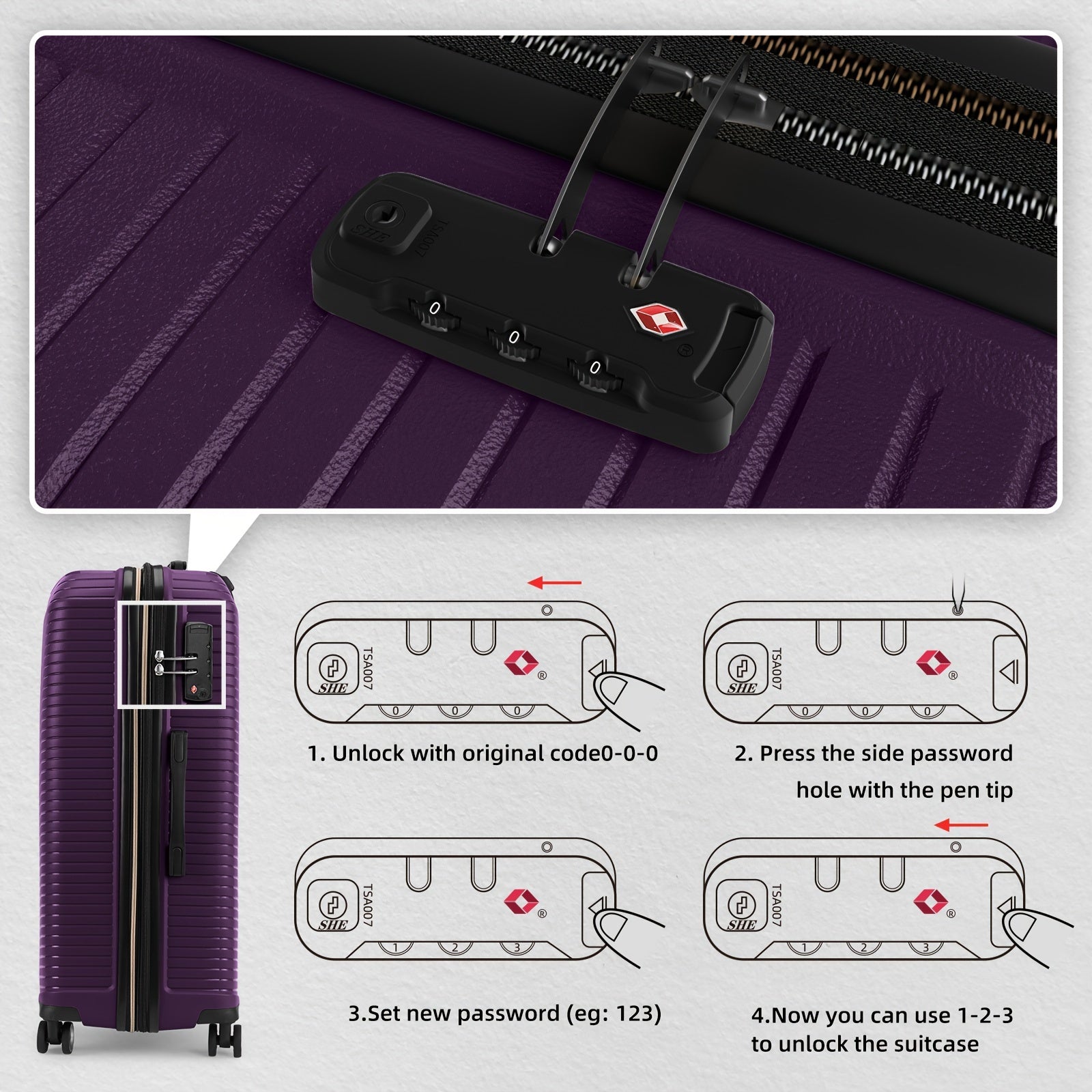 5-Piece Expandable PP Luggage Set - Durable Spinner Suitcases with TSA-Approved Combination Lock, Aluminum Alloy Handle, and Hard Shell - Perfect for Women Travelers and Carry-On Needs