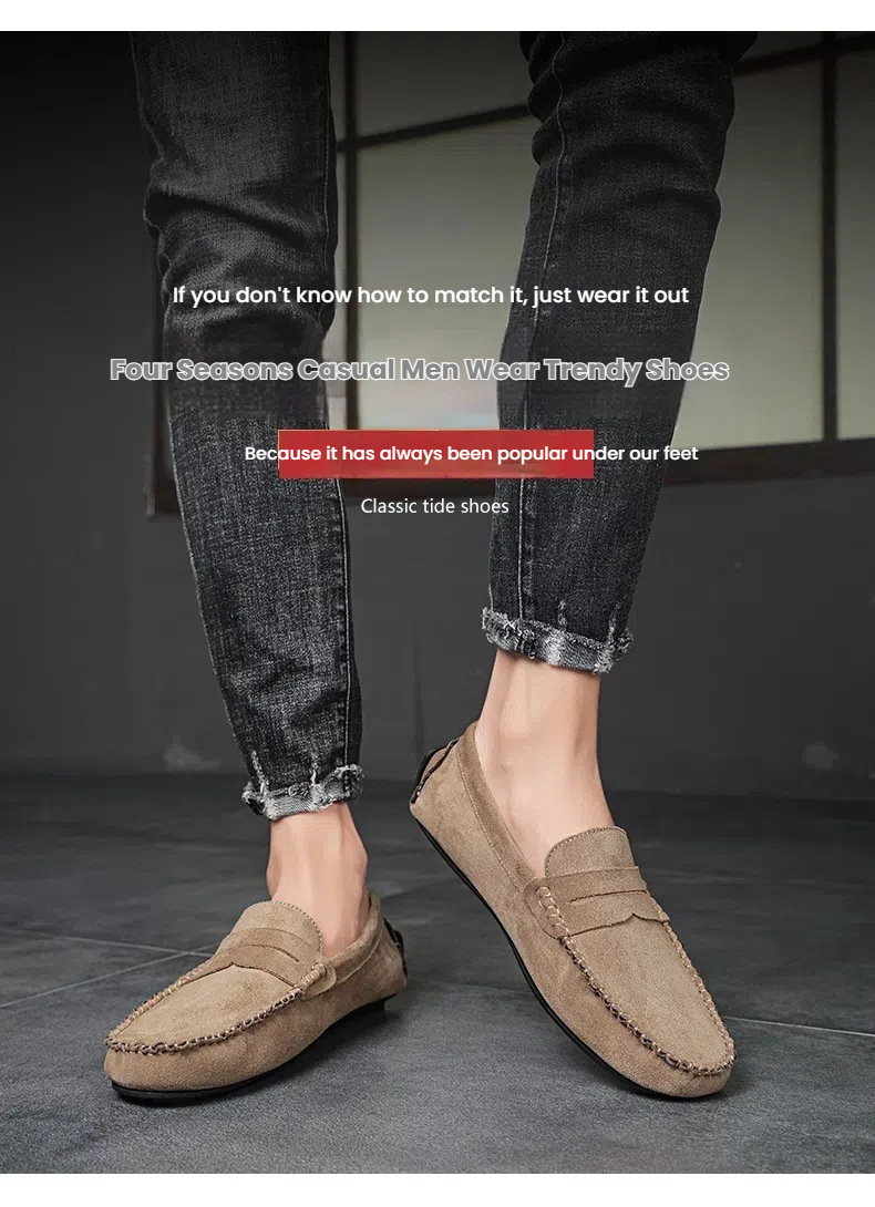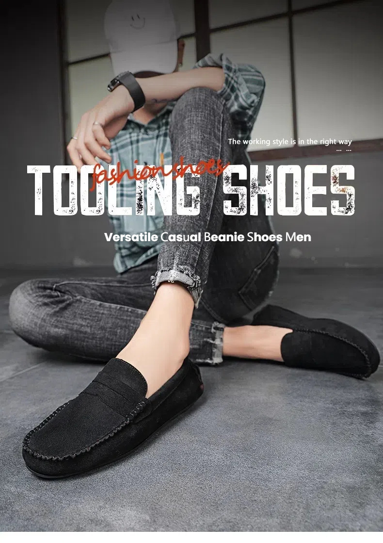 88519 Hand-sewn Doudou men's shoes velvet leather handmade shoes anti-slip Doudou sole one foot pedal business casual commuter style
