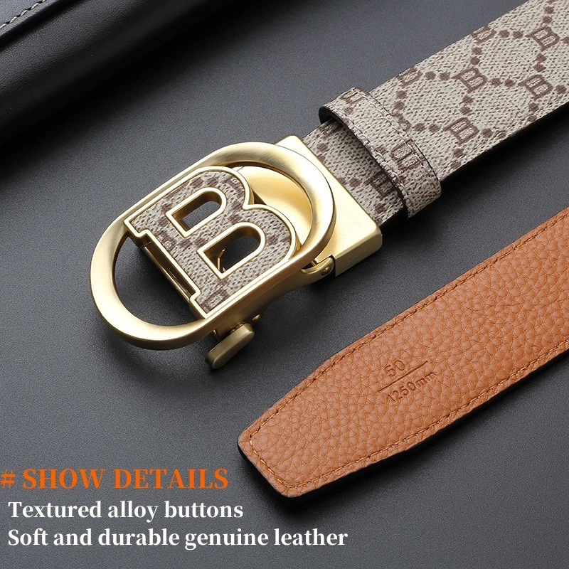 "B" Letter Genuine leather Belt for men Luxury brand Automatic Jeans Trouser belt golf man belt Work social designer waist belts