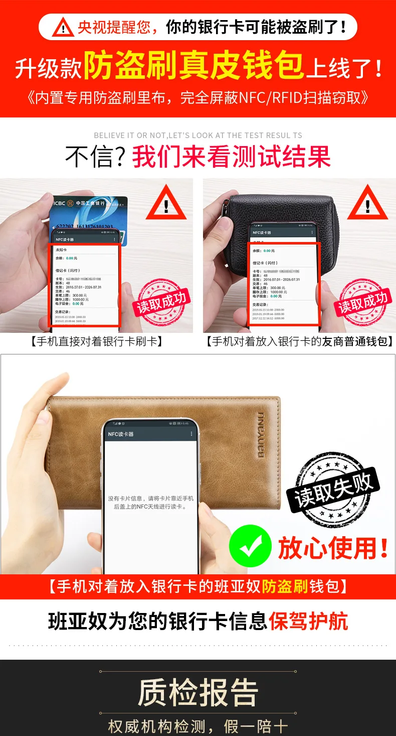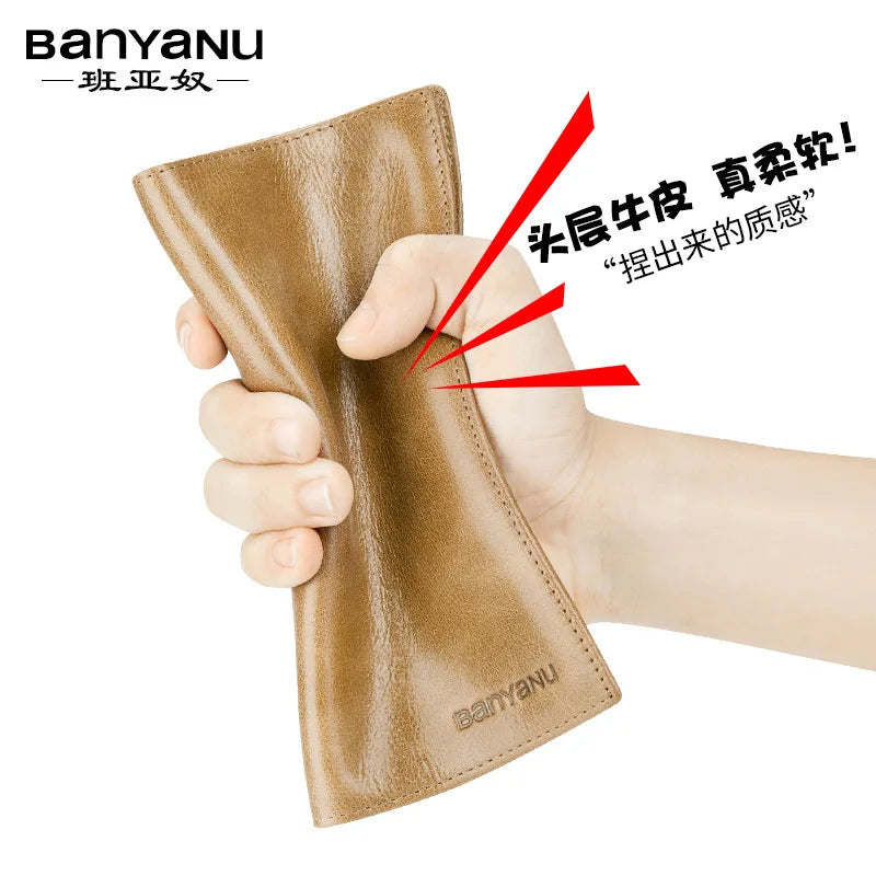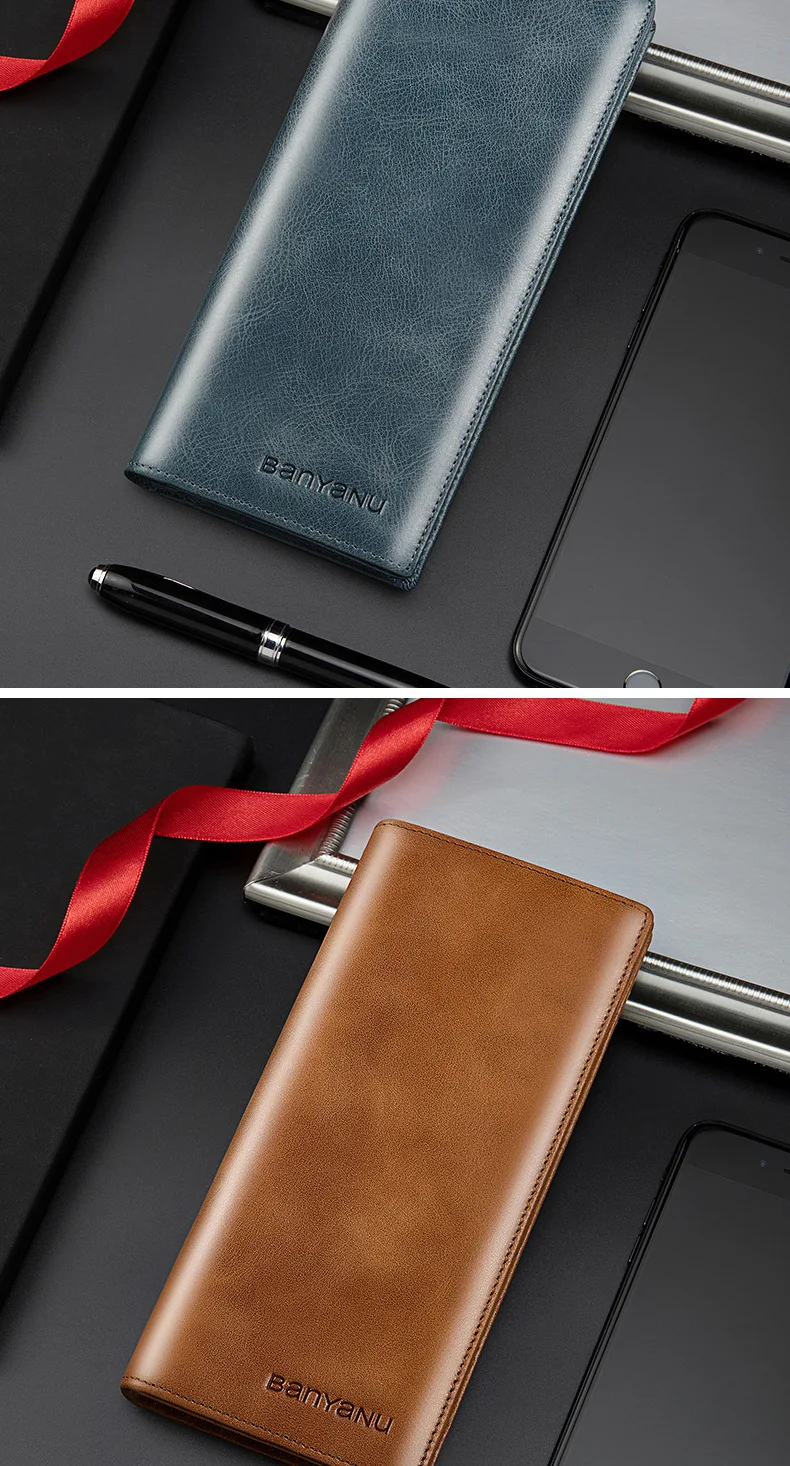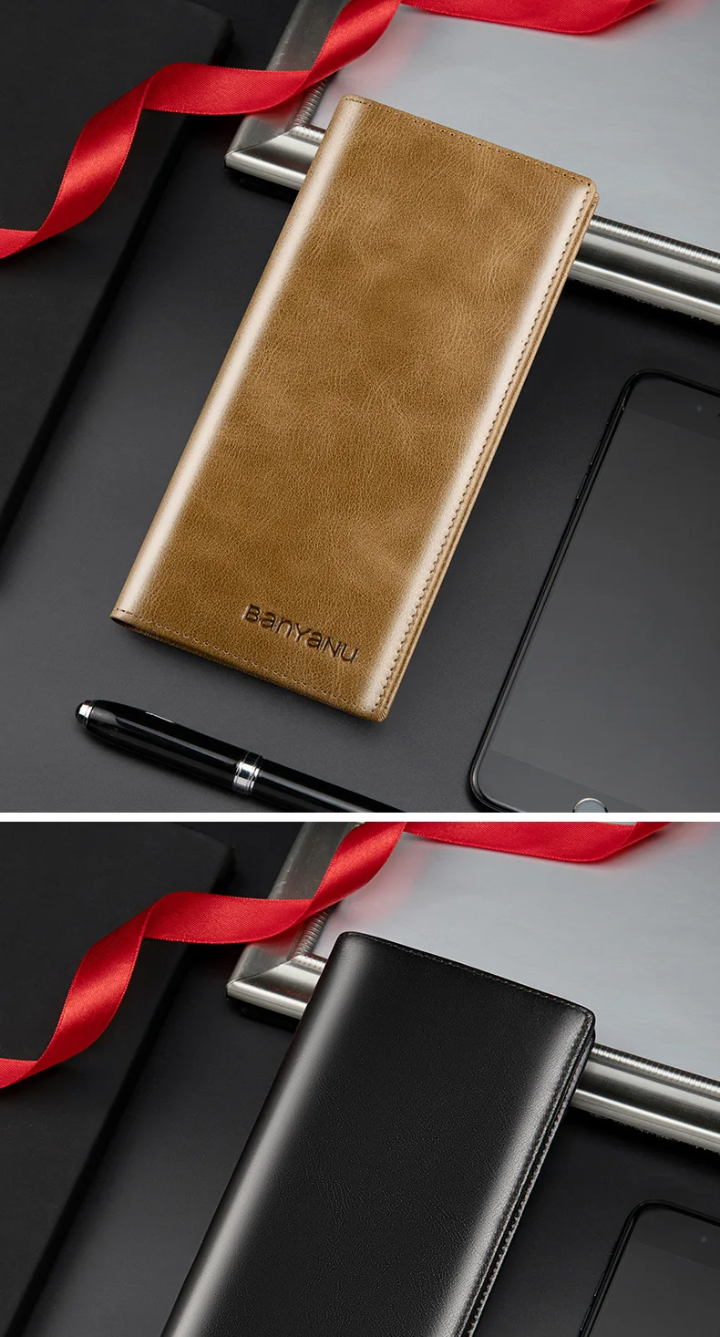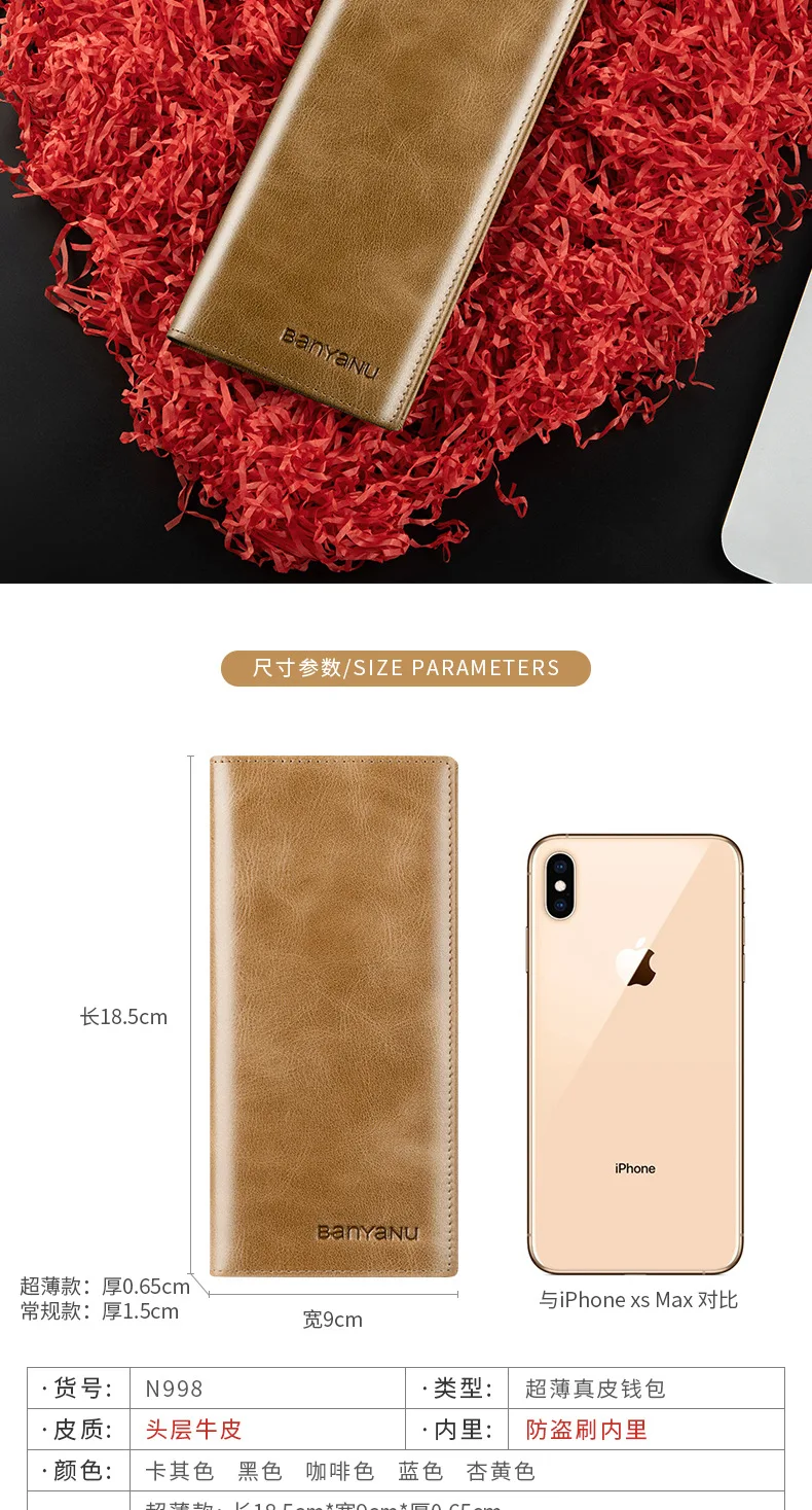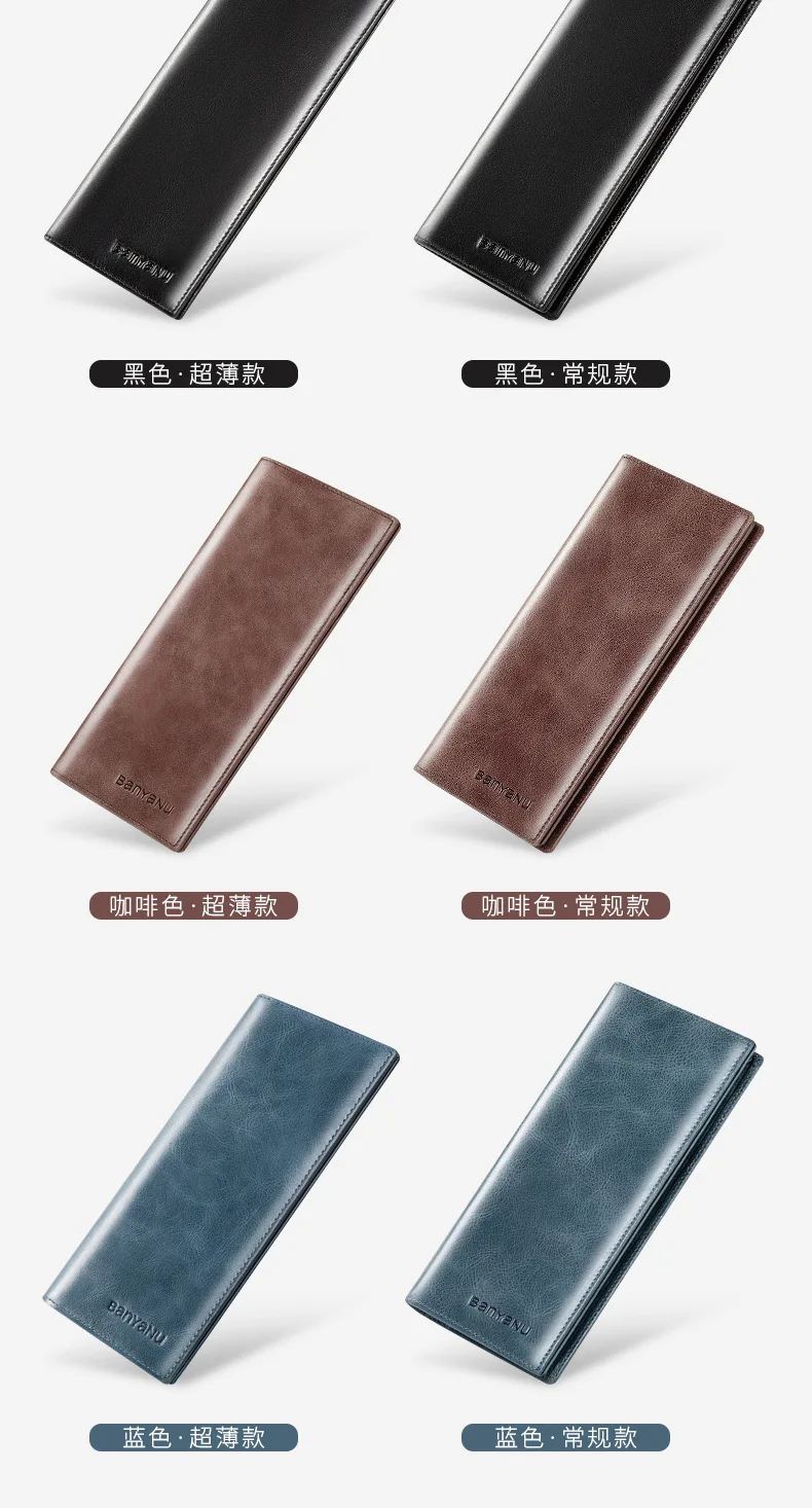 Banyanu Leather Factory Wallet Men's Long Leather Ultra Thin Anti theft Brushed Leather Wallet with Zipper Leather Wallet