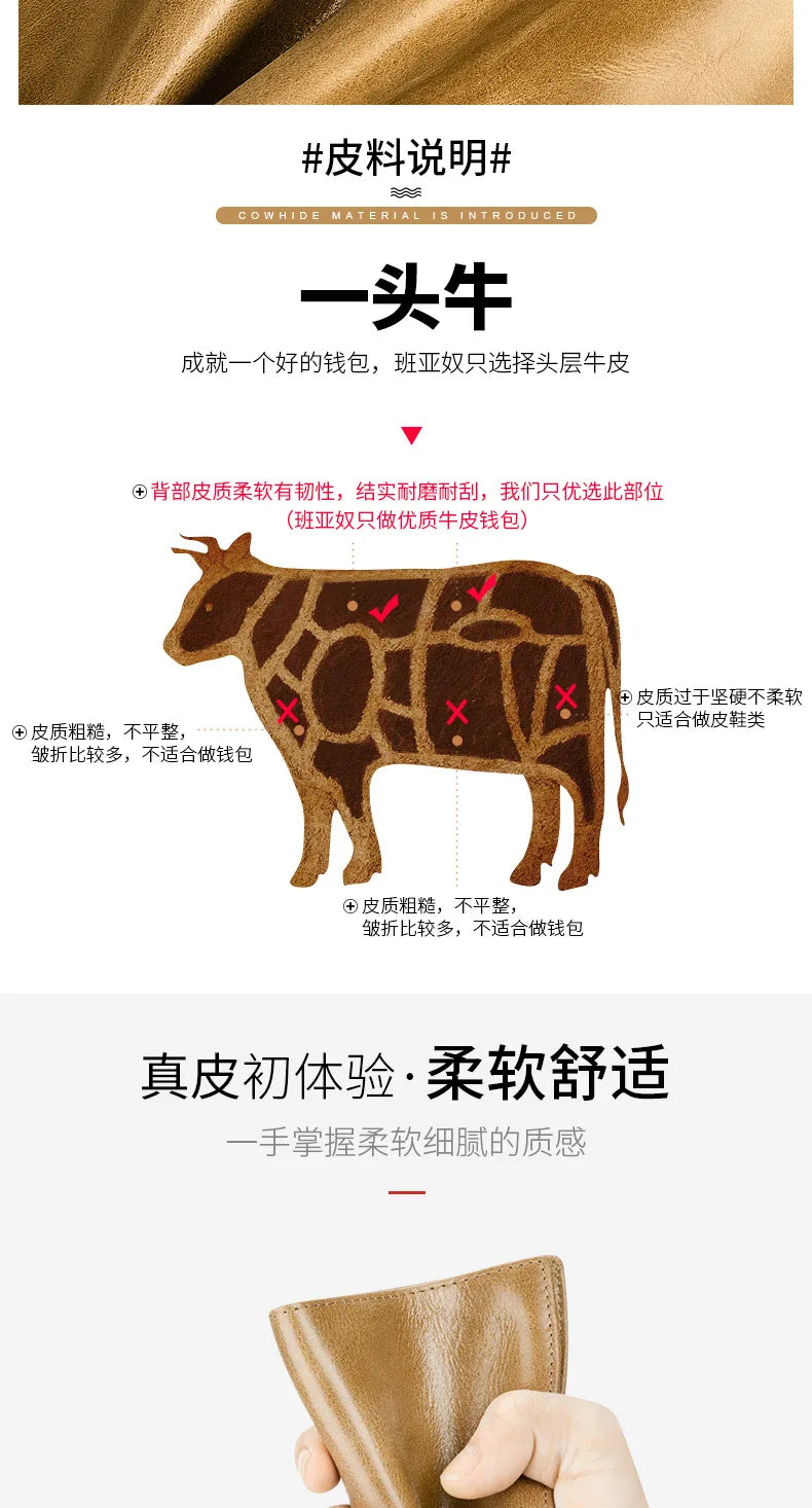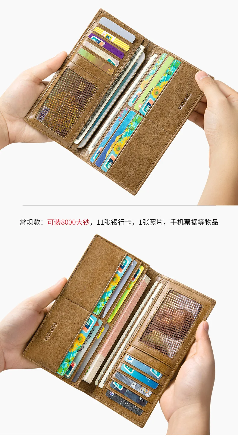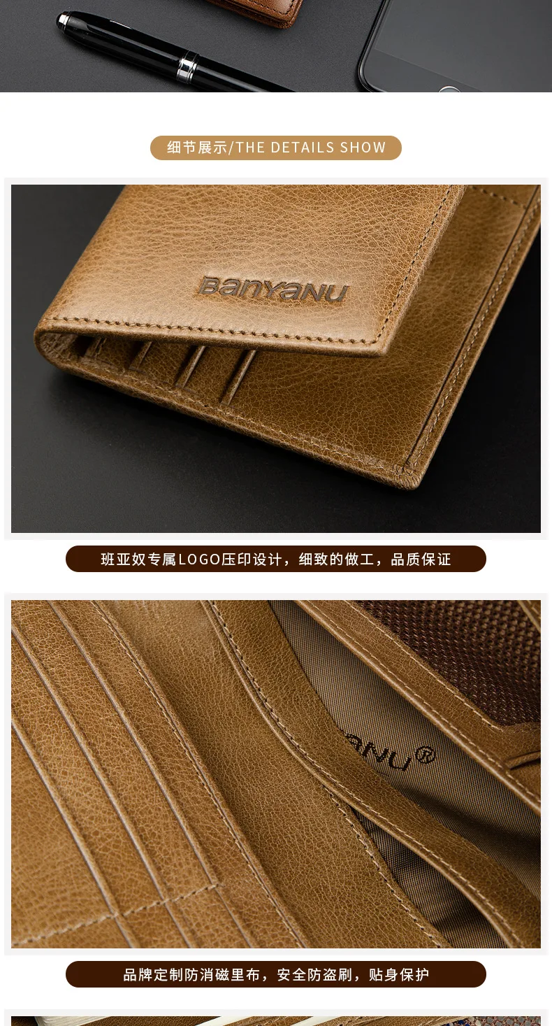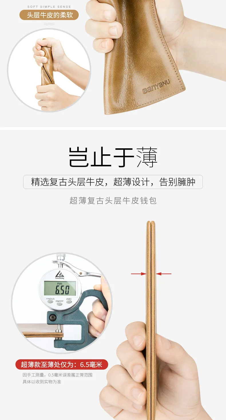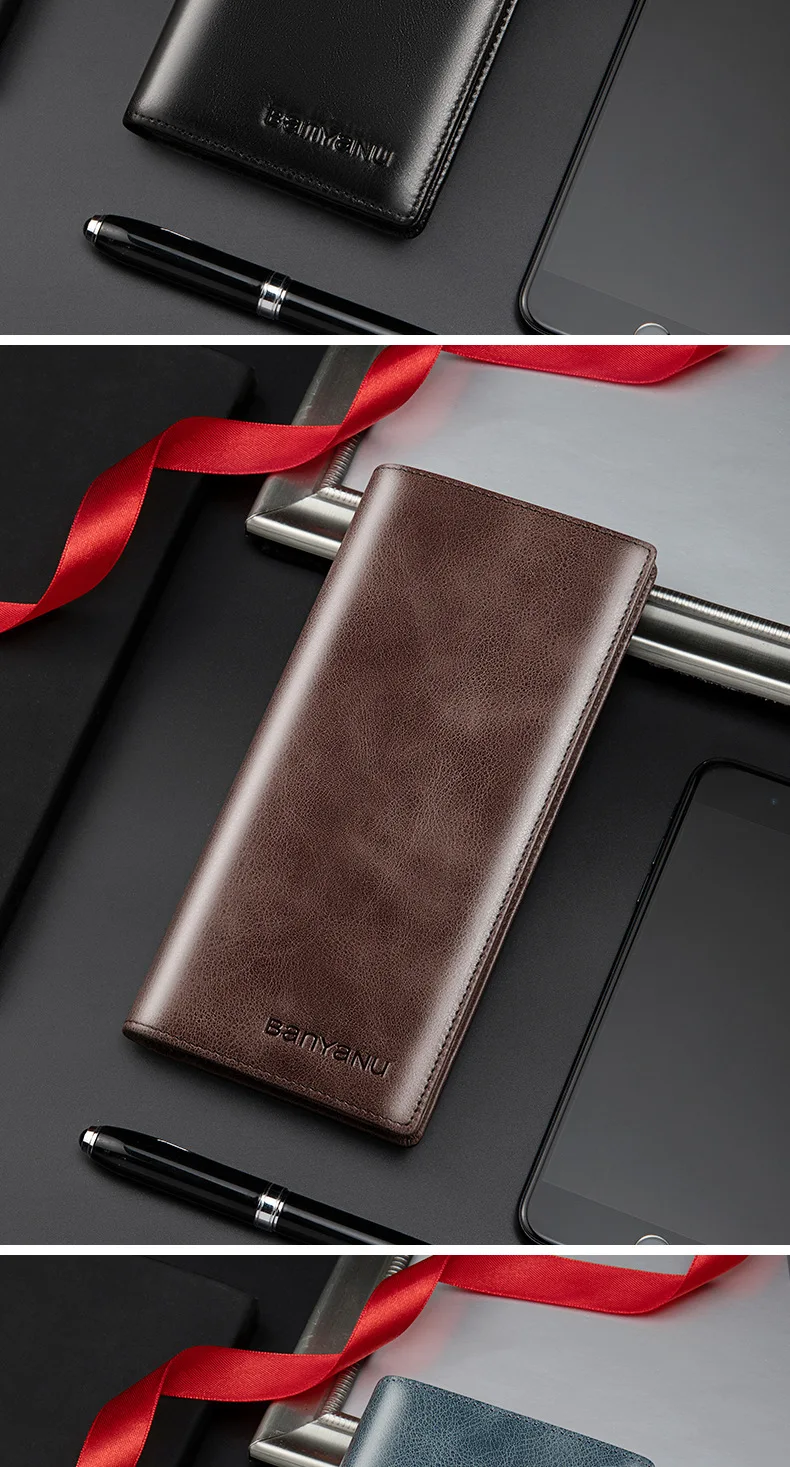 Banyanu Leather Factory Wallet Men's Long Leather Ultra Thin Anti theft Brushed Leather Wallet with Zipper Leather Wallet