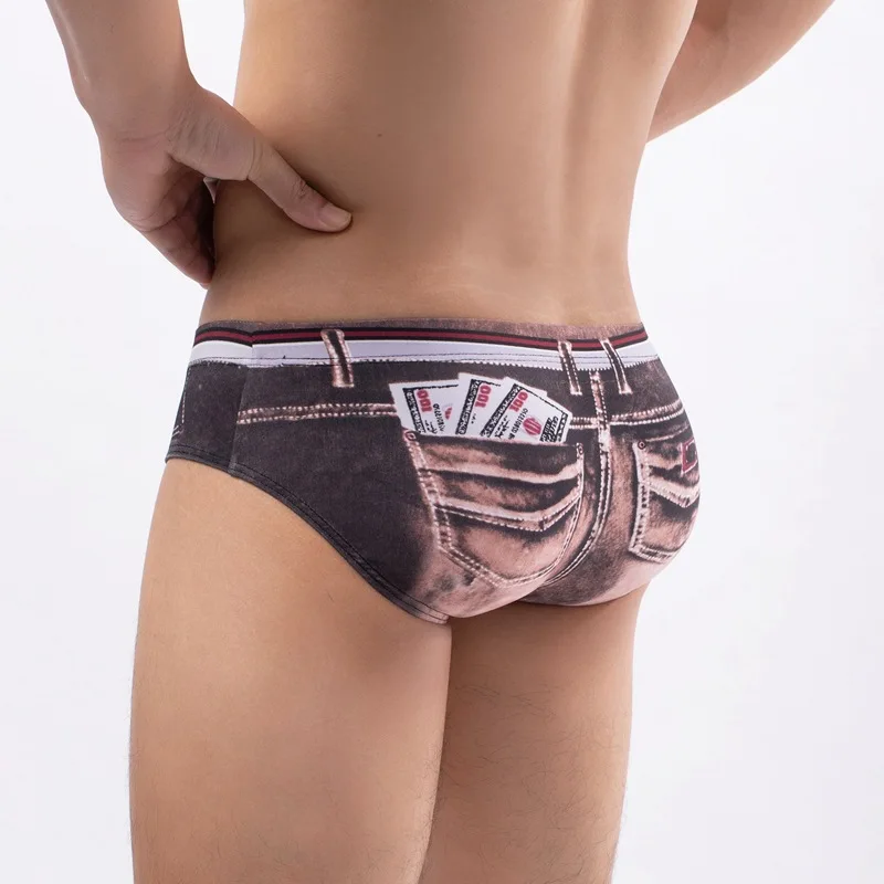 Brief Underwear Men Sexy Denim Short Boxers Men Boxers Man Underpants Breathable Pouch Jeans Printed Bikini Swimwear Male Young