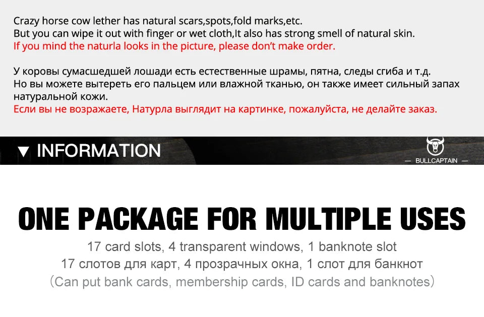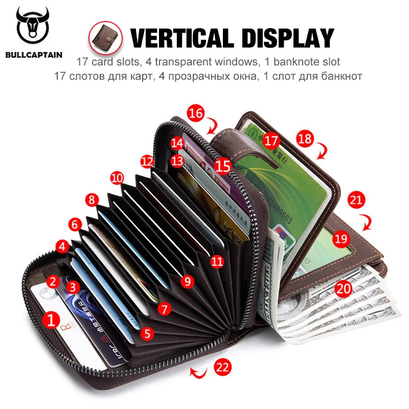 BULLCAPTAIN Business Men's Wallet Genuine Leather Wallet Multi-Function Business Card Holder Small Card Box Leather Purse Man