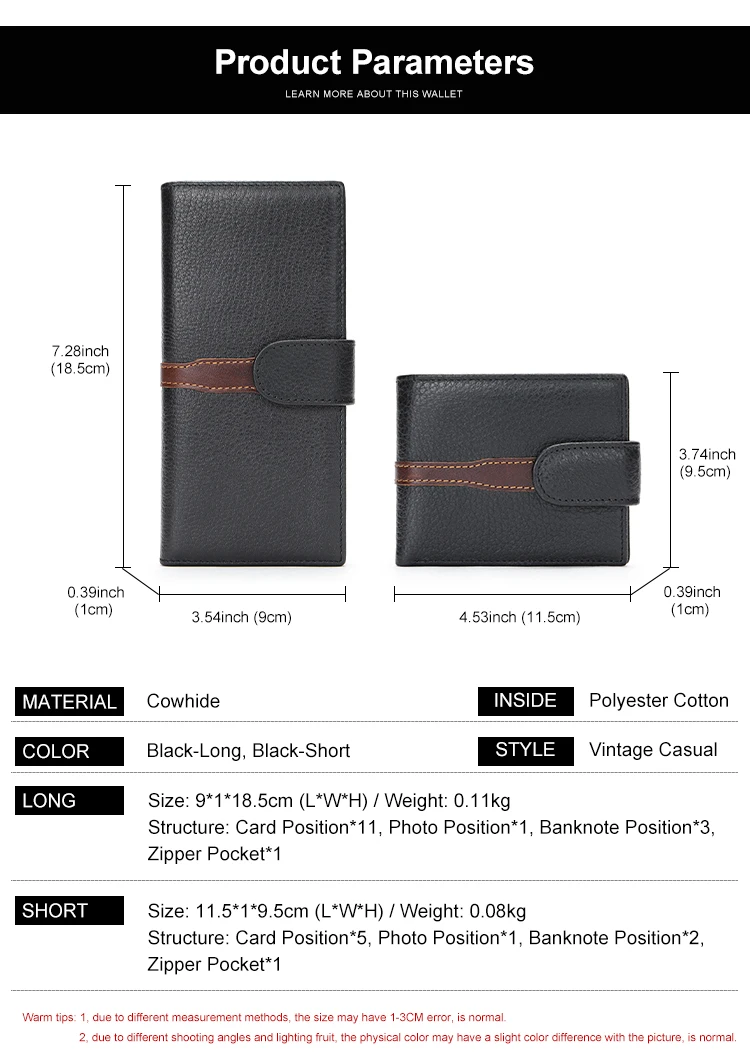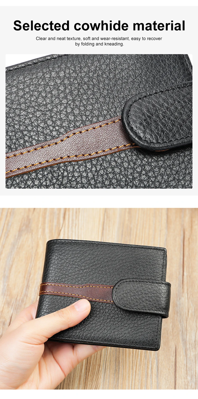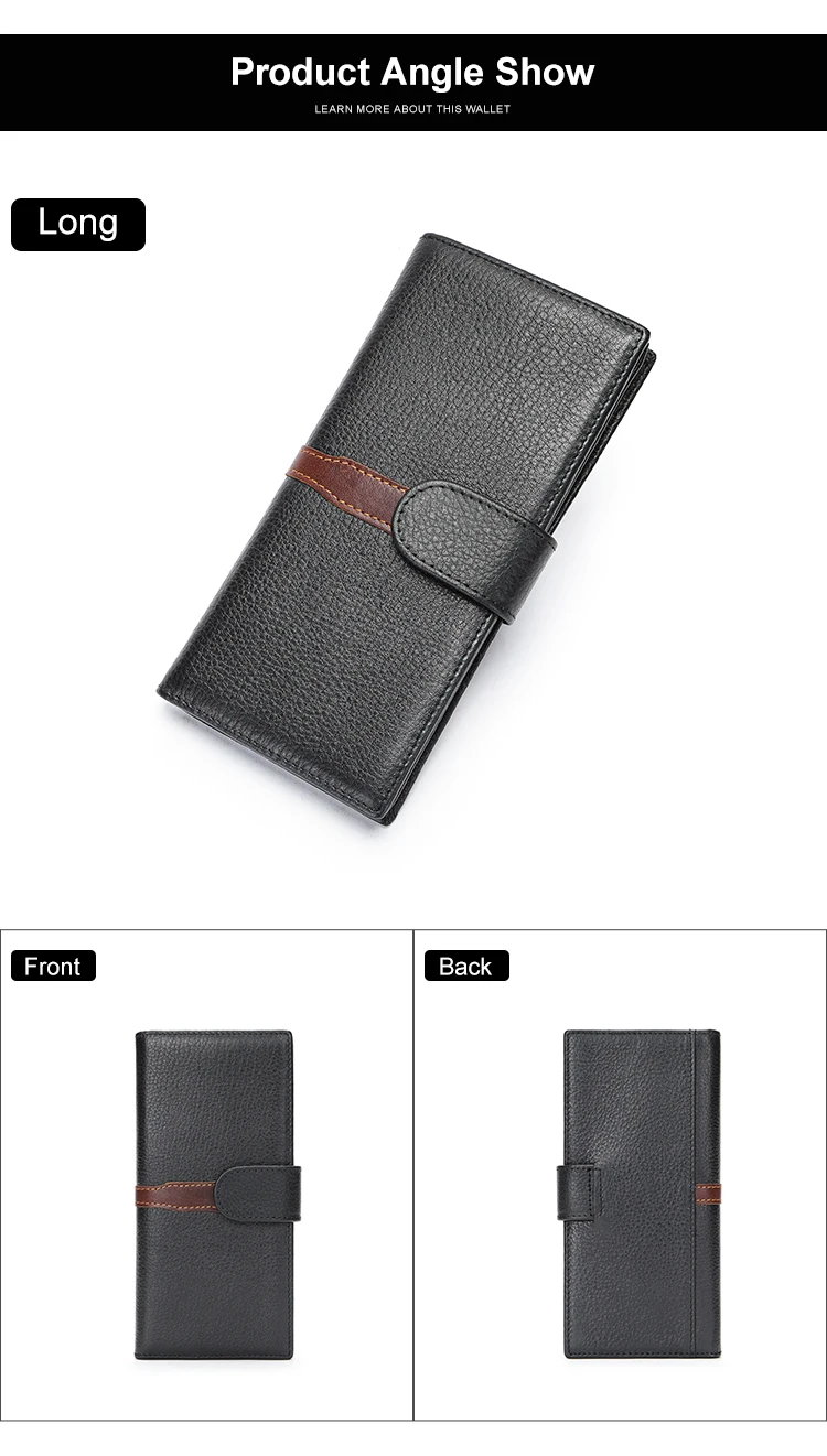 Business Leather Wallet for ID Porte Cartes Card Case Paper Money Photo Ticket Slots Passport Cover Snap Long Short Male Wallet