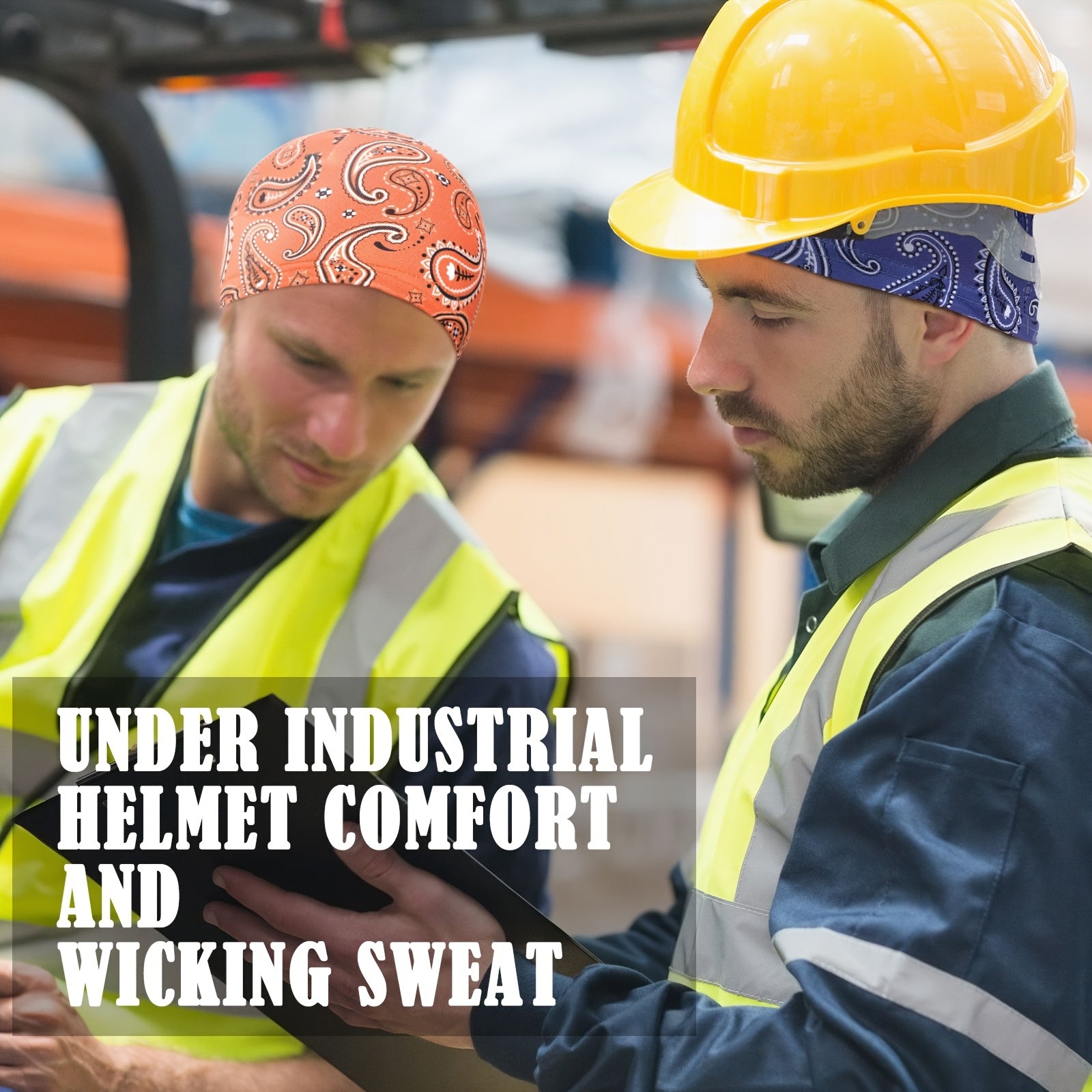 [Cooling Skull Caps] 6pcs Sweat-Wicking Men's Cooling Skull Caps - Paisley Pattern, Breathable Beanie Helmet Liners for Cycling & Running, Multicolor