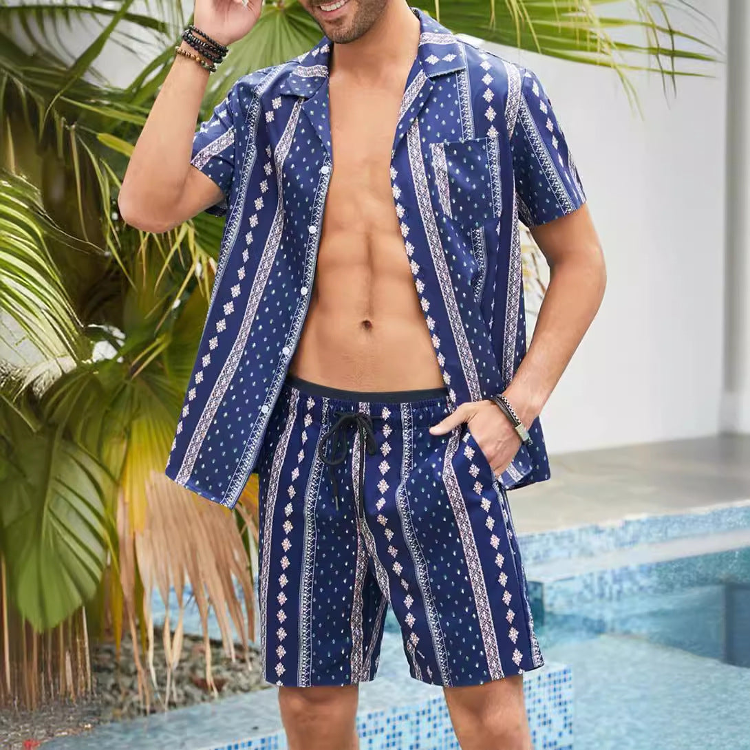 Cuban Collar Striped Short Sleeve Shirt Outfit