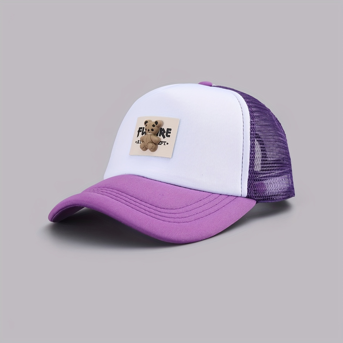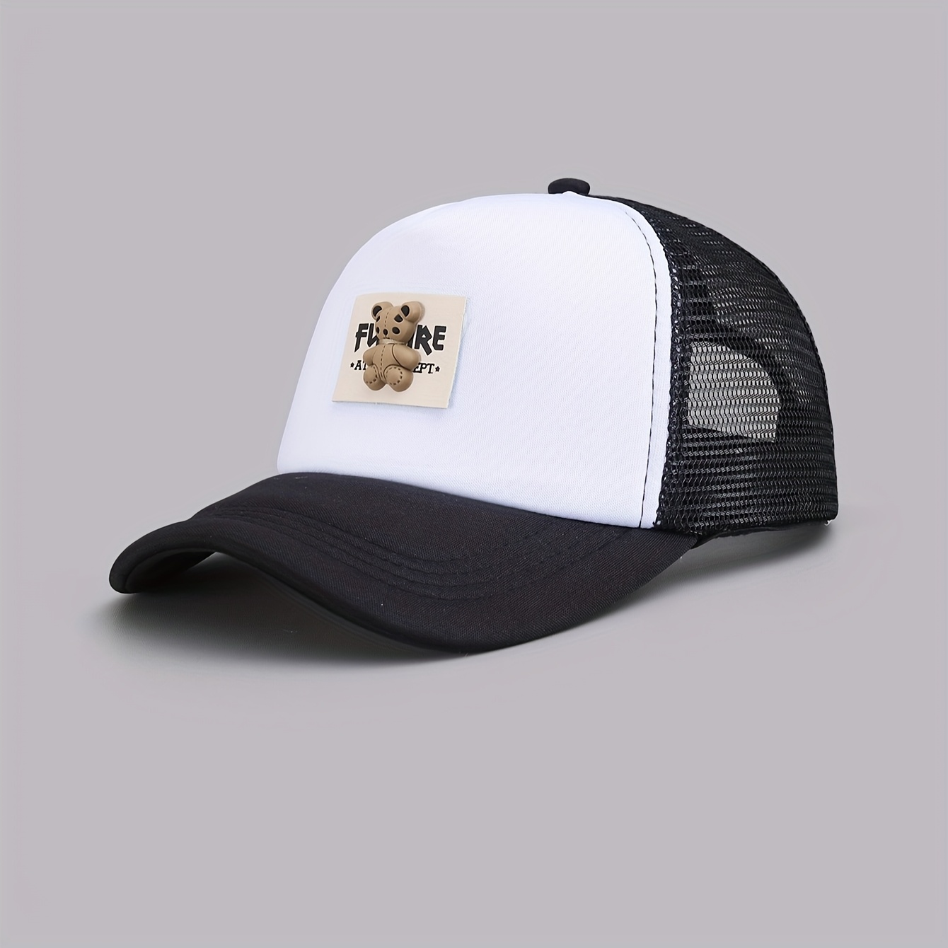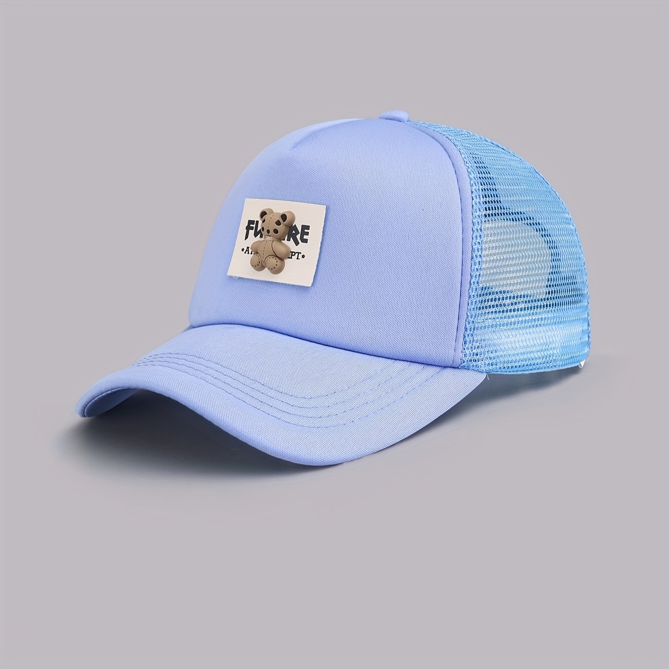 Cute Bear Graphic Baseball Caps - Adjustable, Sun-Protective, Breathable Mesh Summer Hats for Women, Light Blue, Red, Black, White, Pink, Hand Washable Polyester, Summer Headwear | Playful Accessory | Knitted Texture