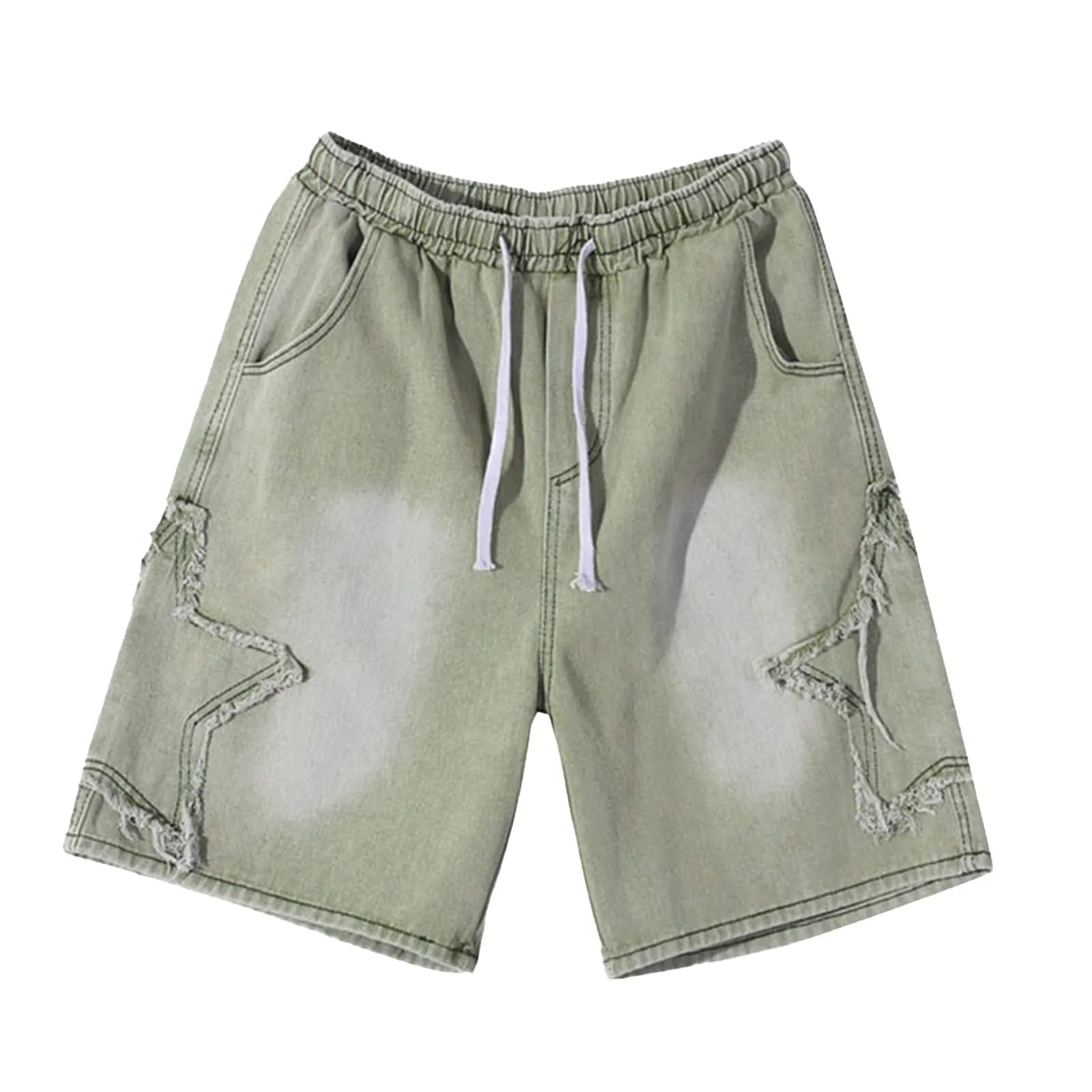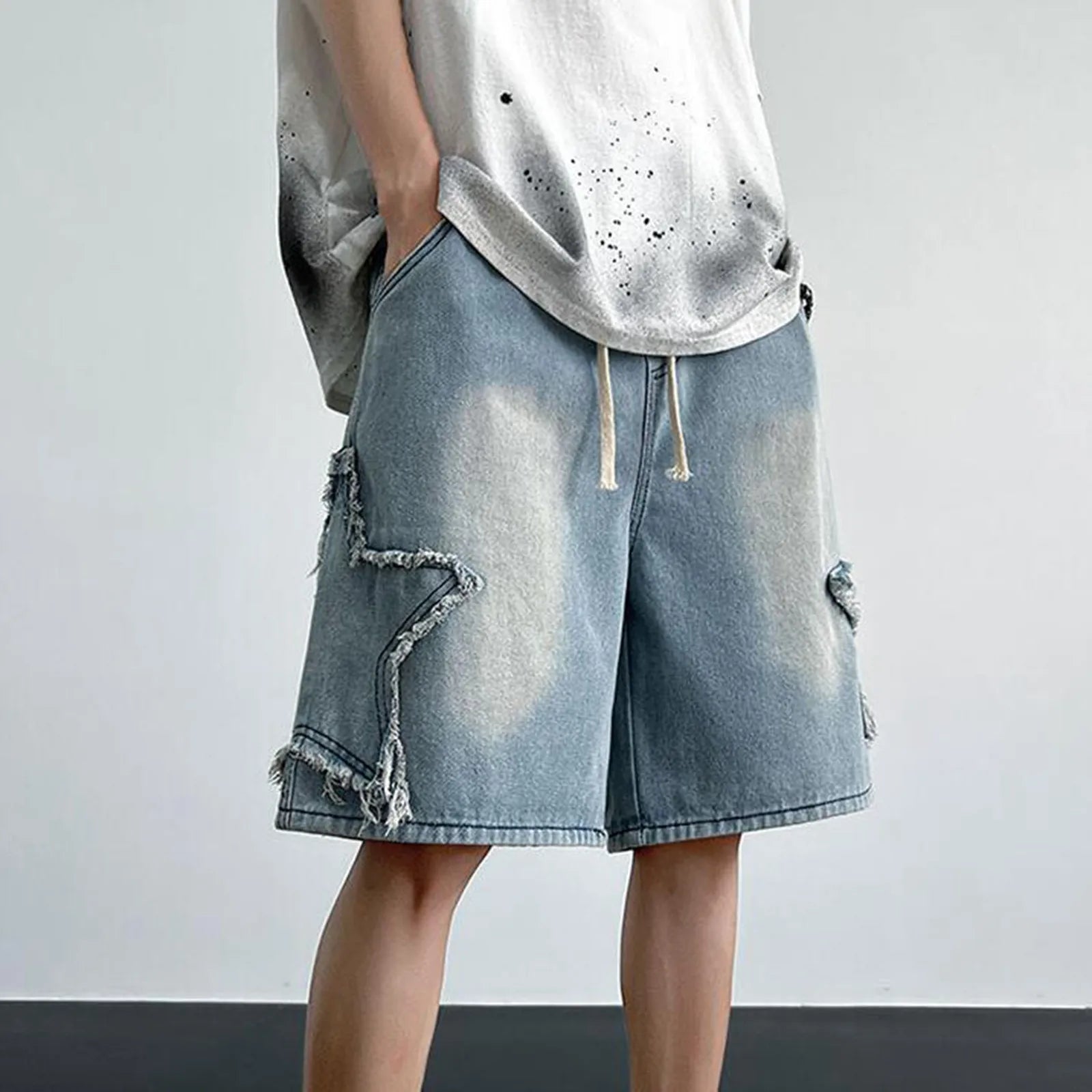 Fashion Denim Shorts For Men Summer Comfortable High Waist Drawstring Short Pants Men’s Streetwear Star Loose Casual Shorts
