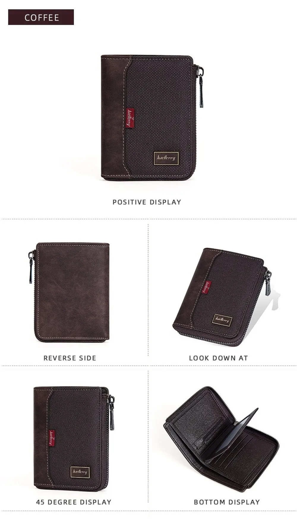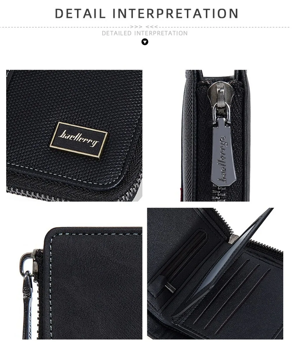 Fashion PU Leather Men's Wallet Multi-functional Zipper Closure Business Wallet Large Capacity Square Short Card Bag Male