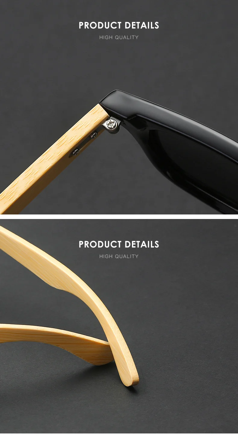 Fashionable Bamboo Wood Sunglasses Men Women Classic Square Vintage Driving Sun Glasses Black Fishing Eyewear UV400 Eyepieces