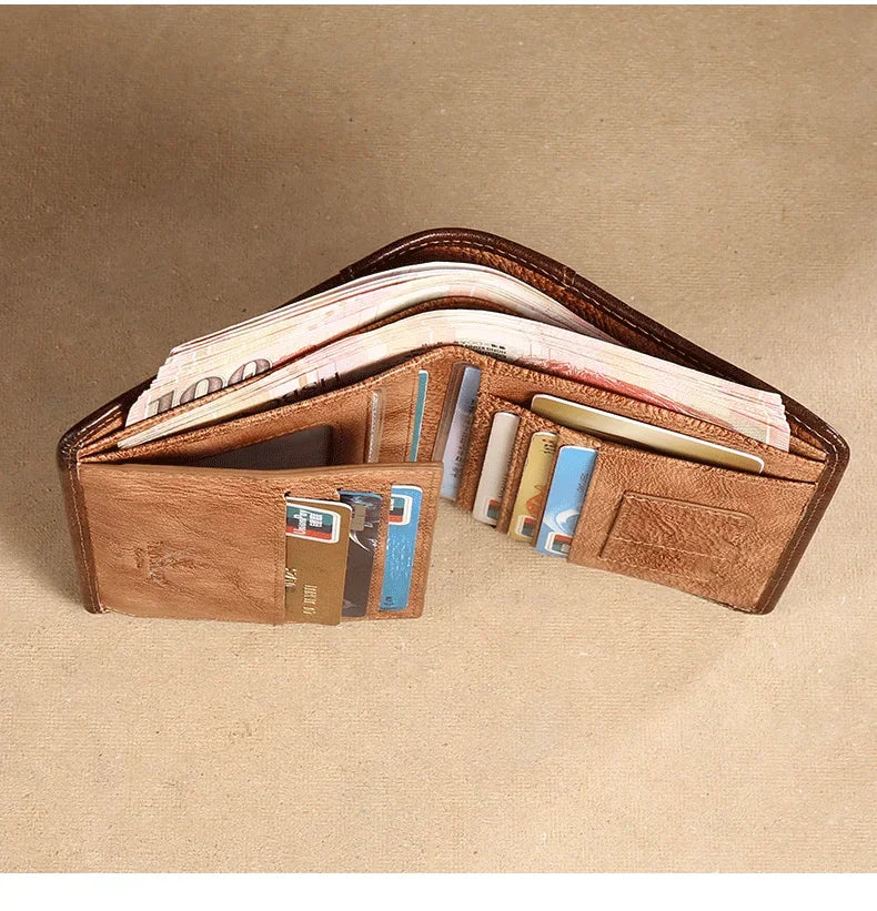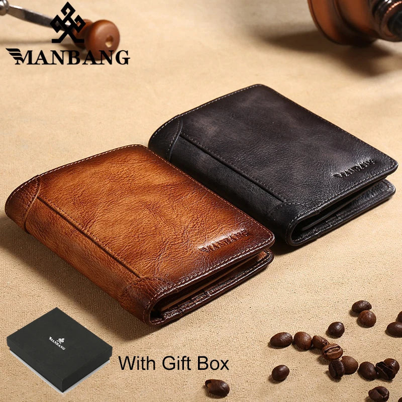 【Genuine Cow Leather / Gift Box】ManBang Luxury Men's Wallet RFID Short Trifold For Men with ID Window and Credit Card Holder