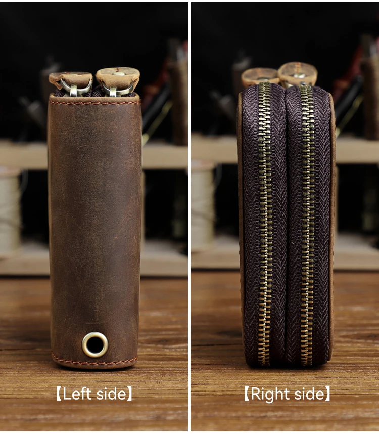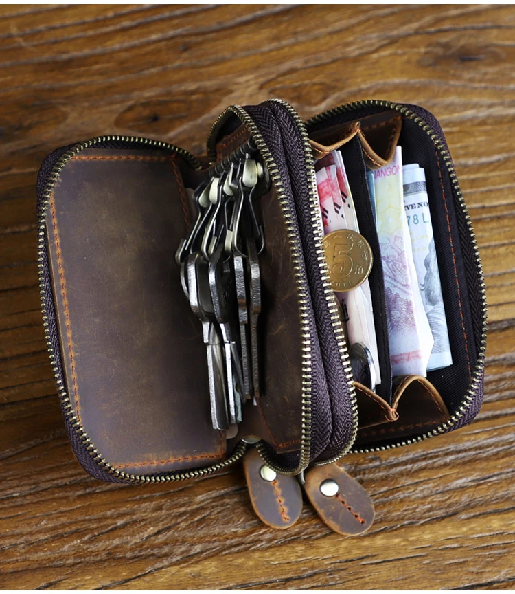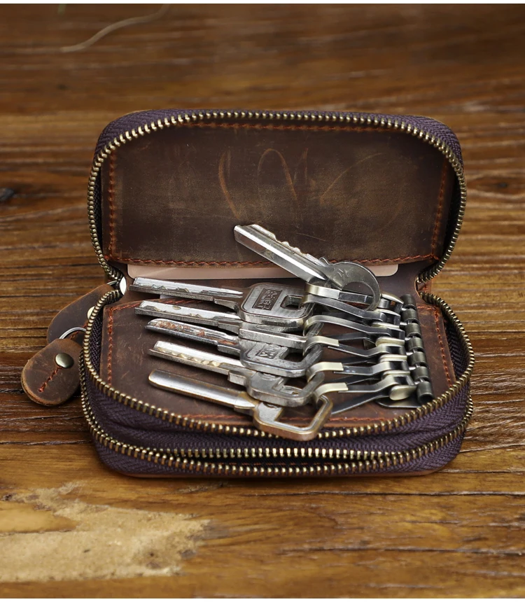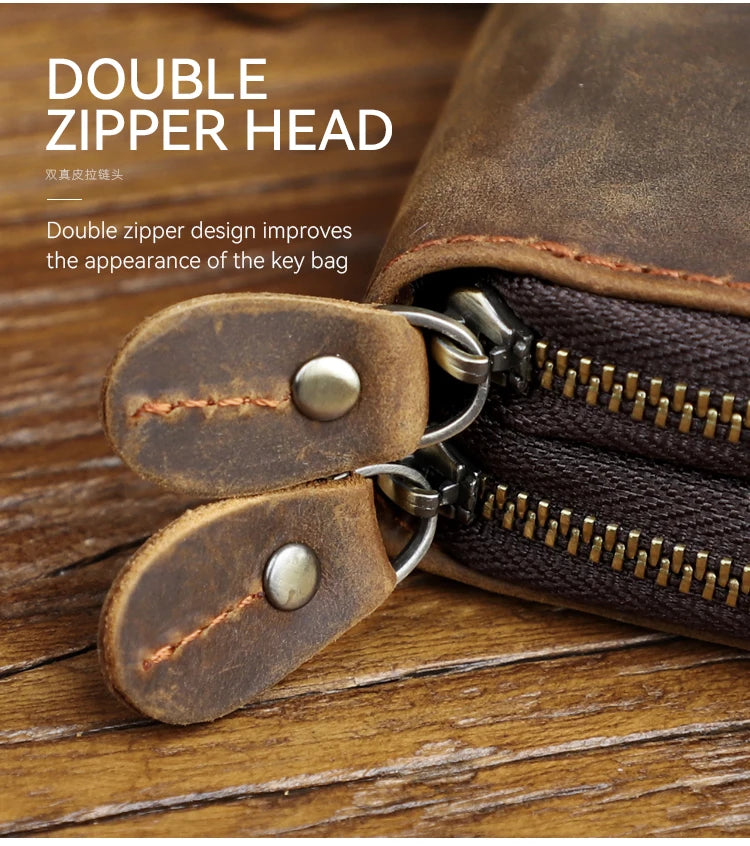 Genuine Leather Key Wallet For Men Retro Car Smart Key Case Double Zipper Housekeeper Keys Coin Pouch Organizer Handbag Women