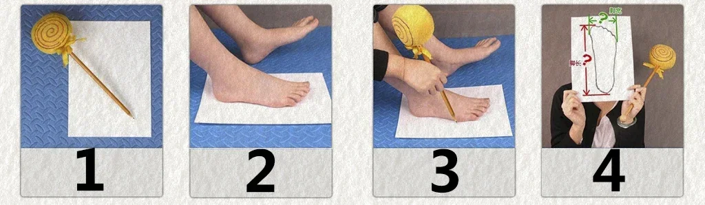 2.Put your feet on the paper naturally. Special attention must be paid to bare feet and no cotton socks.