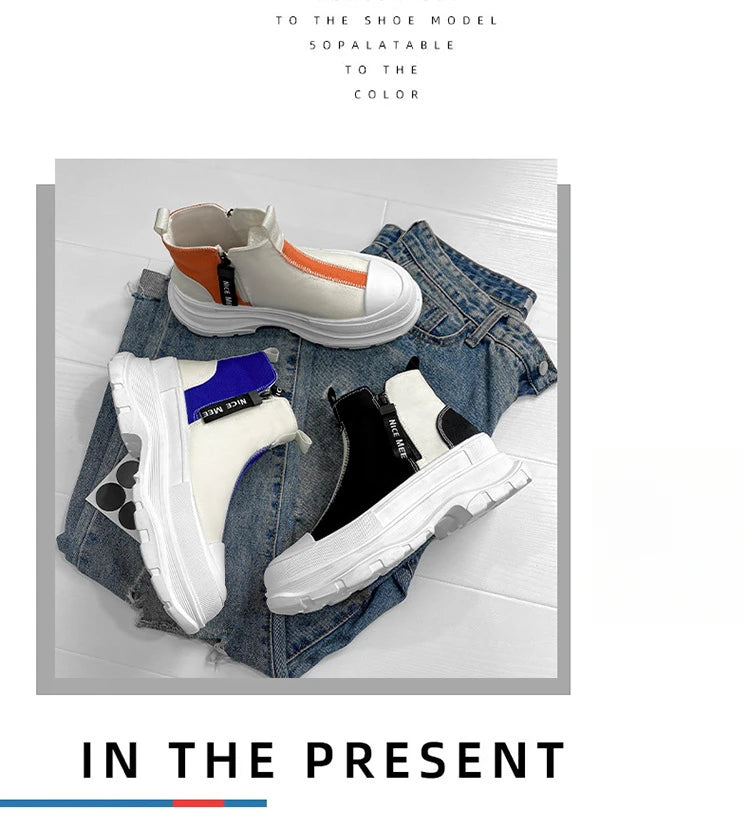 High-top Thick Soled Boots Men's Shoes for Spring Autumn Breathable Casual Chelsea Boots Men's Trend Canvass Side Zipper Sneaker
