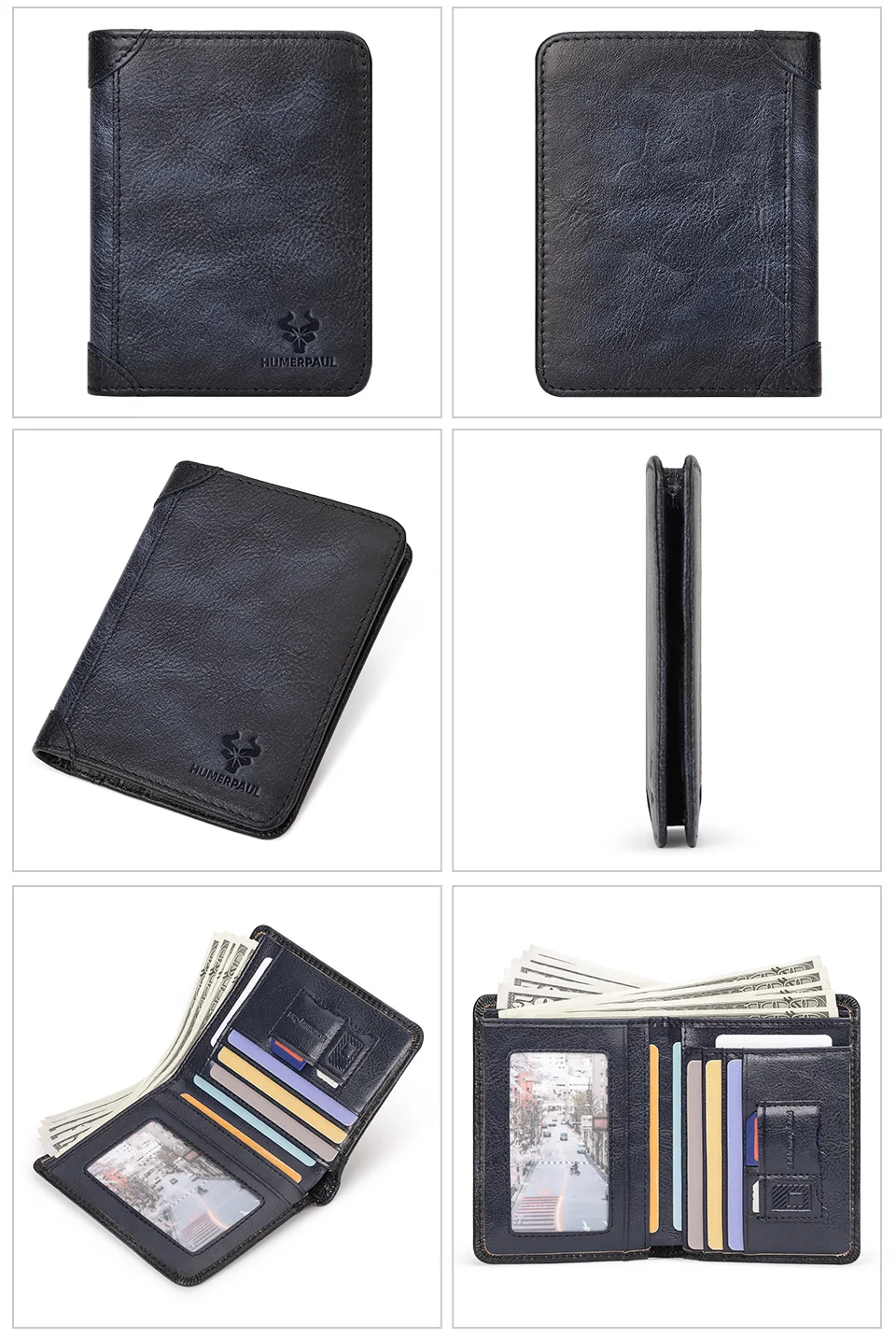 HUMERPAUL Slim Soft Real Leather Wallet for Men RFID Blocking Bifold Multi-card Card Holder ID Purse Male Thin Front Pocket