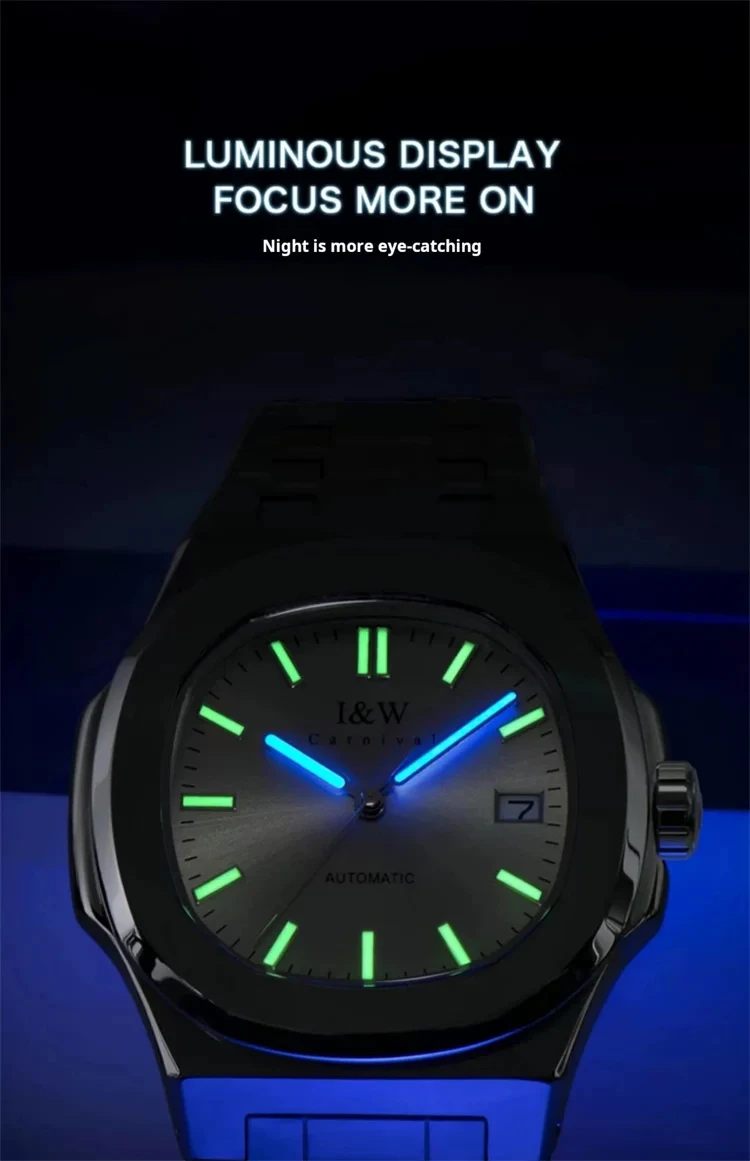 IW Carnival Male Luxury Mechanical Wristwatches Automatic Movement Sapphire Mirror Simple Model Waterproof Luminous Men's Watch