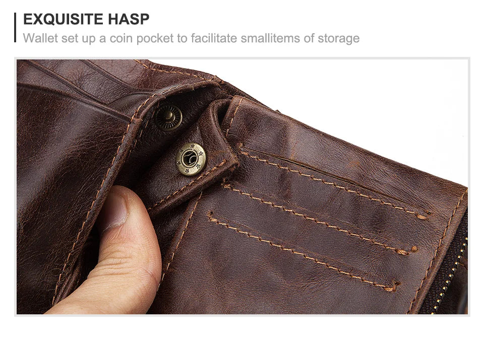 LAREET Fashion Genuine Leather Wallet With Cowhide For Men Money Card Holder Purse RFID Short Double Zipper Coin Pocket Bifold