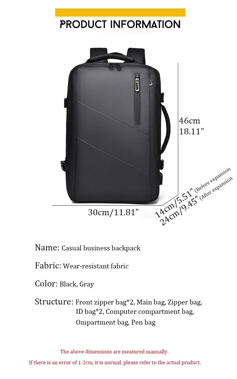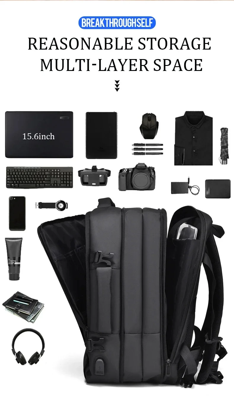 Large Capacity Men's Backpack Expandable Business Travel Bag 15.6 inch Laptop Waterproof Backpack USB Charging Camping Baggage