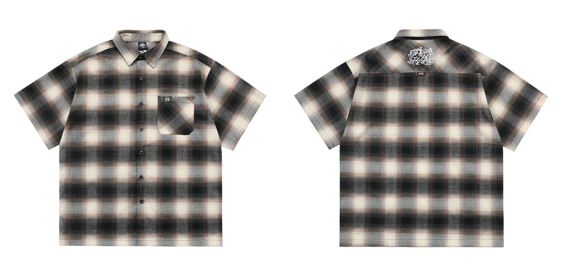 Large Plaid Classic Pocket Half Sleeve Cardigan Short Sleeve Shirt