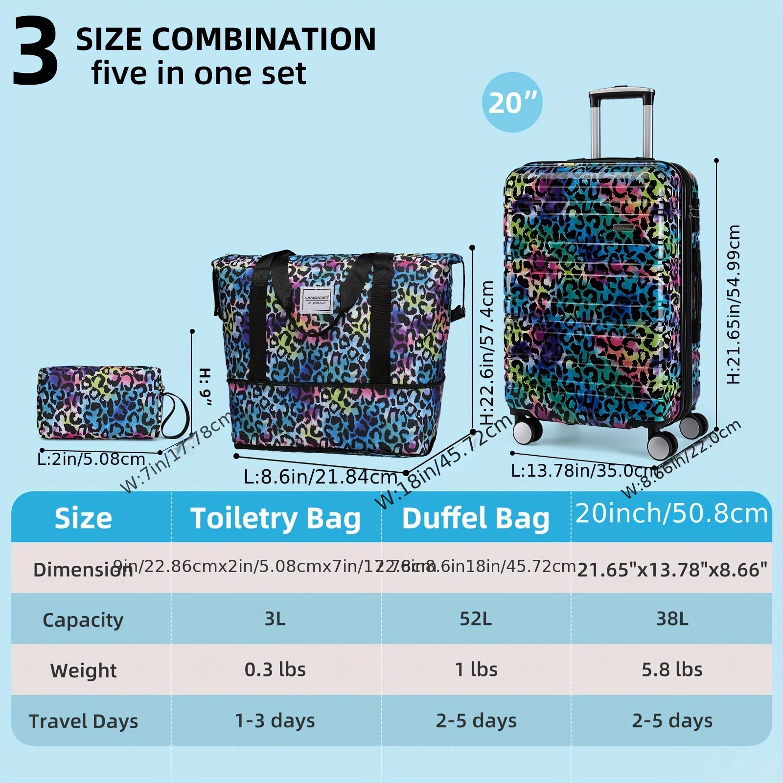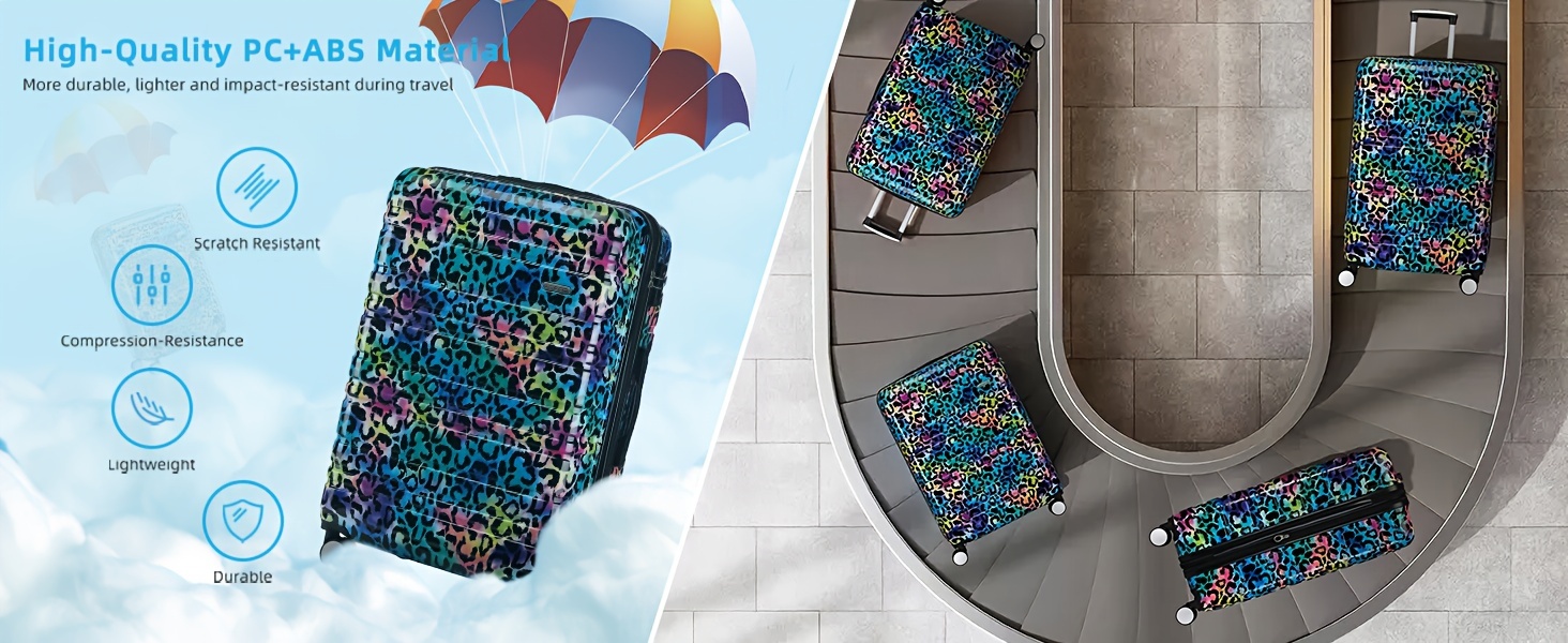 Luggage Sets 3 Piece, Hardside 20 IN Carry on Luggage Airline Approved PC+ABS Suitcase Set with Spinner Wheels TSA Lock, Lightweight Rolling Suitcase for Men and Women, Cheetah Print