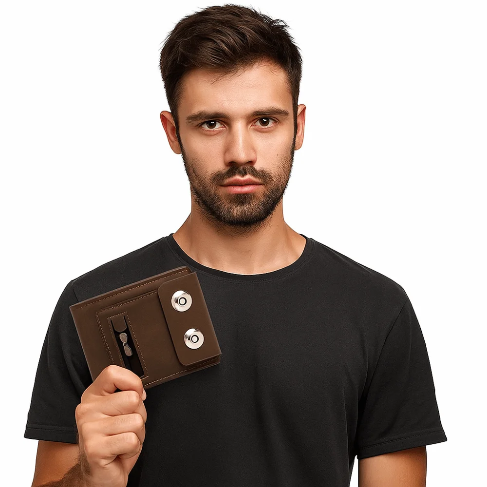 Luxury PU Leather Men's Wallet Anti-Theft Solid Color Short Card Bag Large Capacity Magnetic Buckle Business Wallet Male