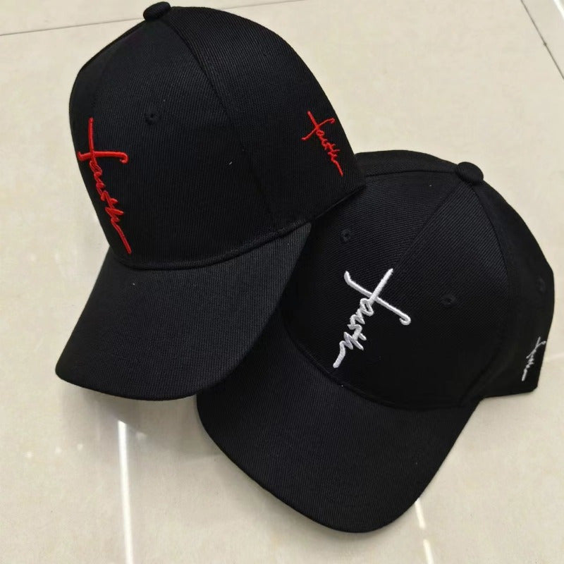 Men'S And Women'S Faith Embroidered Black And White Peaked Baseball Caps, Suitable for Outdoor Streets And Campuses, The Best Choice for Individuality