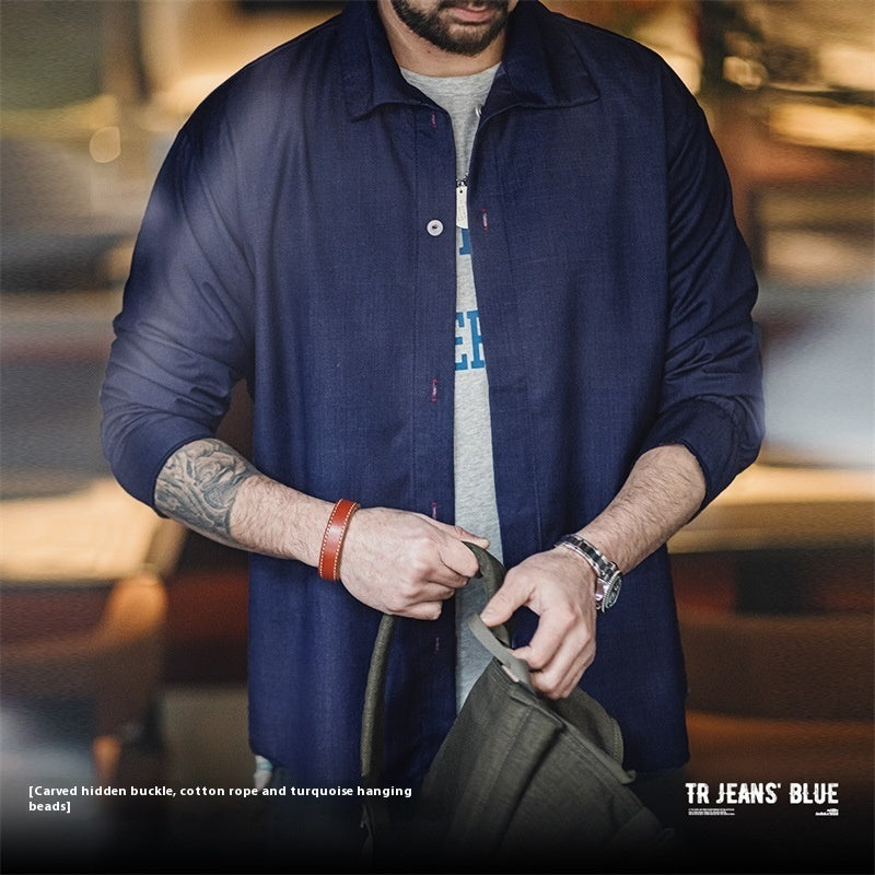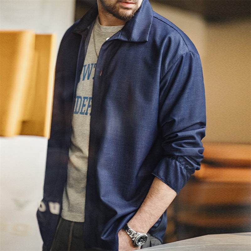Men's American-style Retro Imitation Tencel Denim Shirt