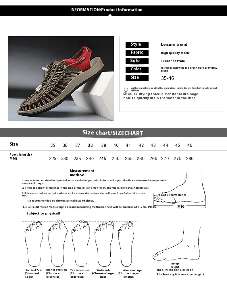 Men's braided casual outdoor sandals oversized sandals summer breathable oversized traceable shoes Roman sandals design Logo