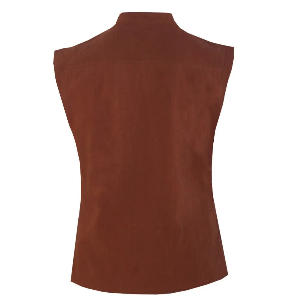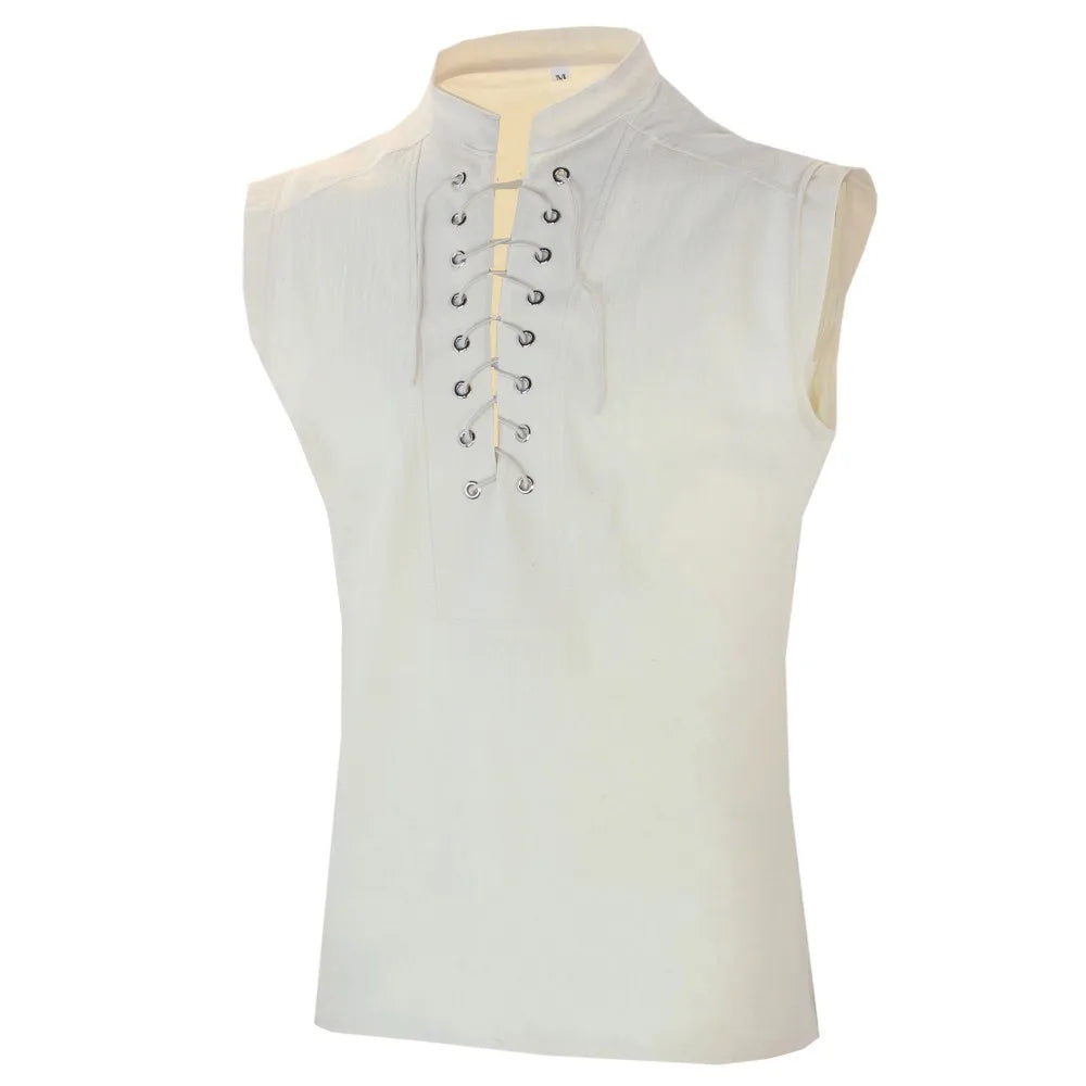 Men's Casual Shirt Black Green Steampunk Gothic Tank Tops Medieval Shirt Lace-Up Sleeveless Renaissance Pirate Shirts for Men