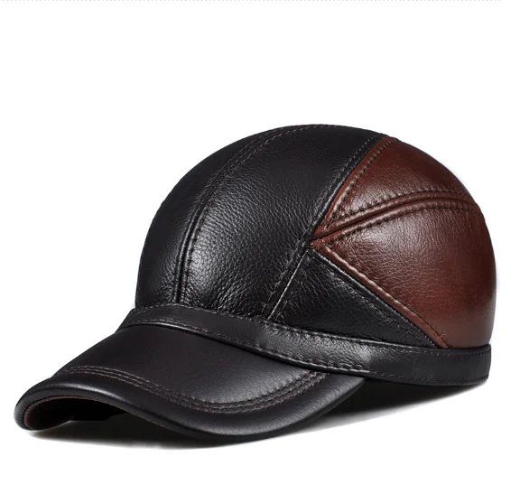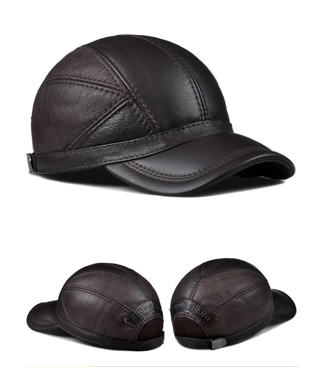 Men's Golf Genuine Leather Pilot Hat Male Winter Real Cow Skin Casual Wear Baseball Caps Outdoors Korean Plate Flying Hats