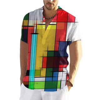 Men's Linen Fashion Plaid Sleeve Shirt Top