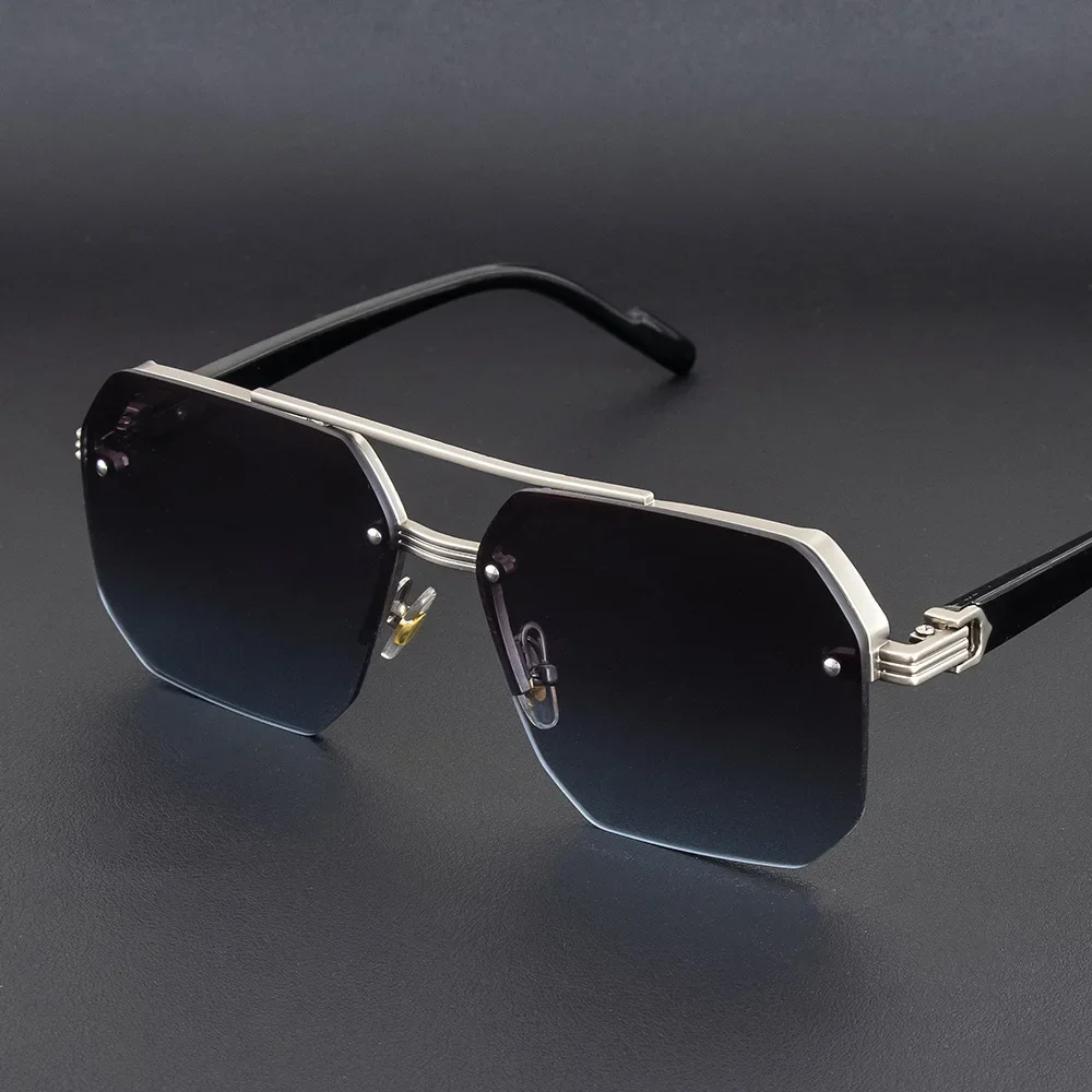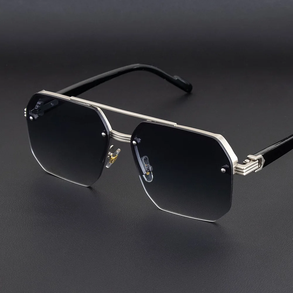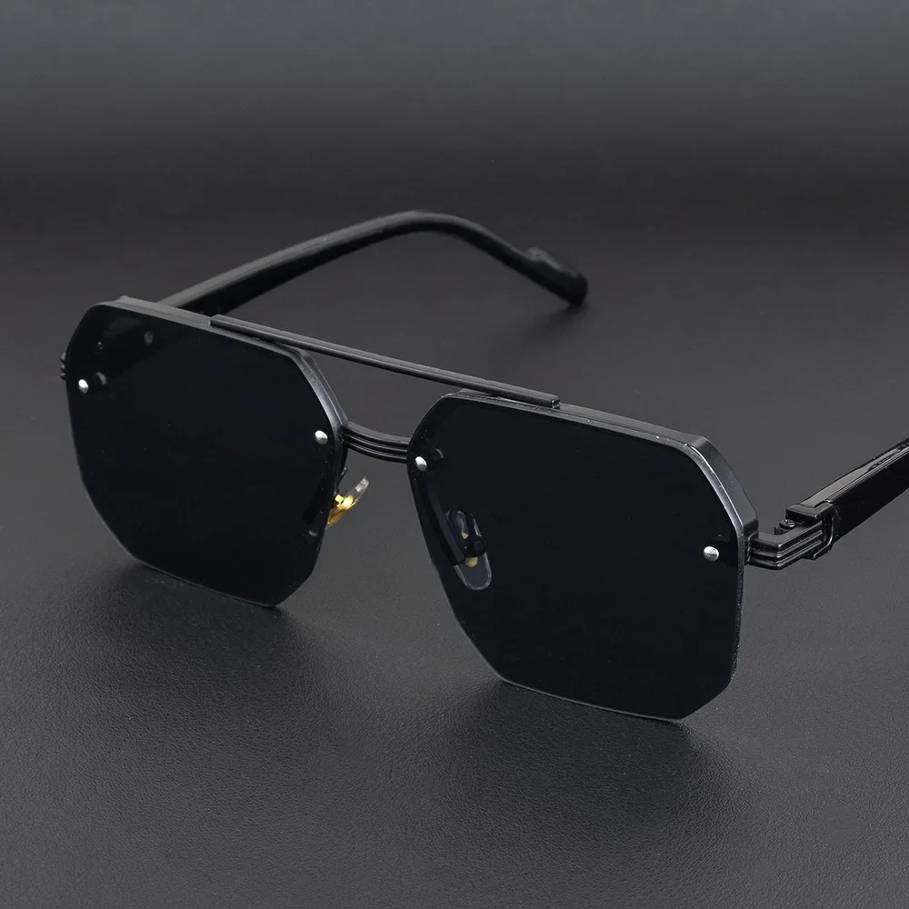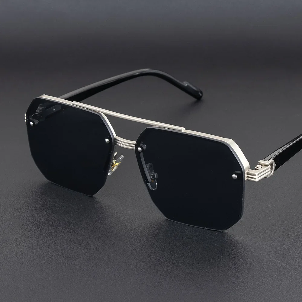 Men's Metal Sunglasses Square Half Frame Rice Nails Casual Trend Glasses Personality Retro Fashion Outdoor Sports Eyeglasses