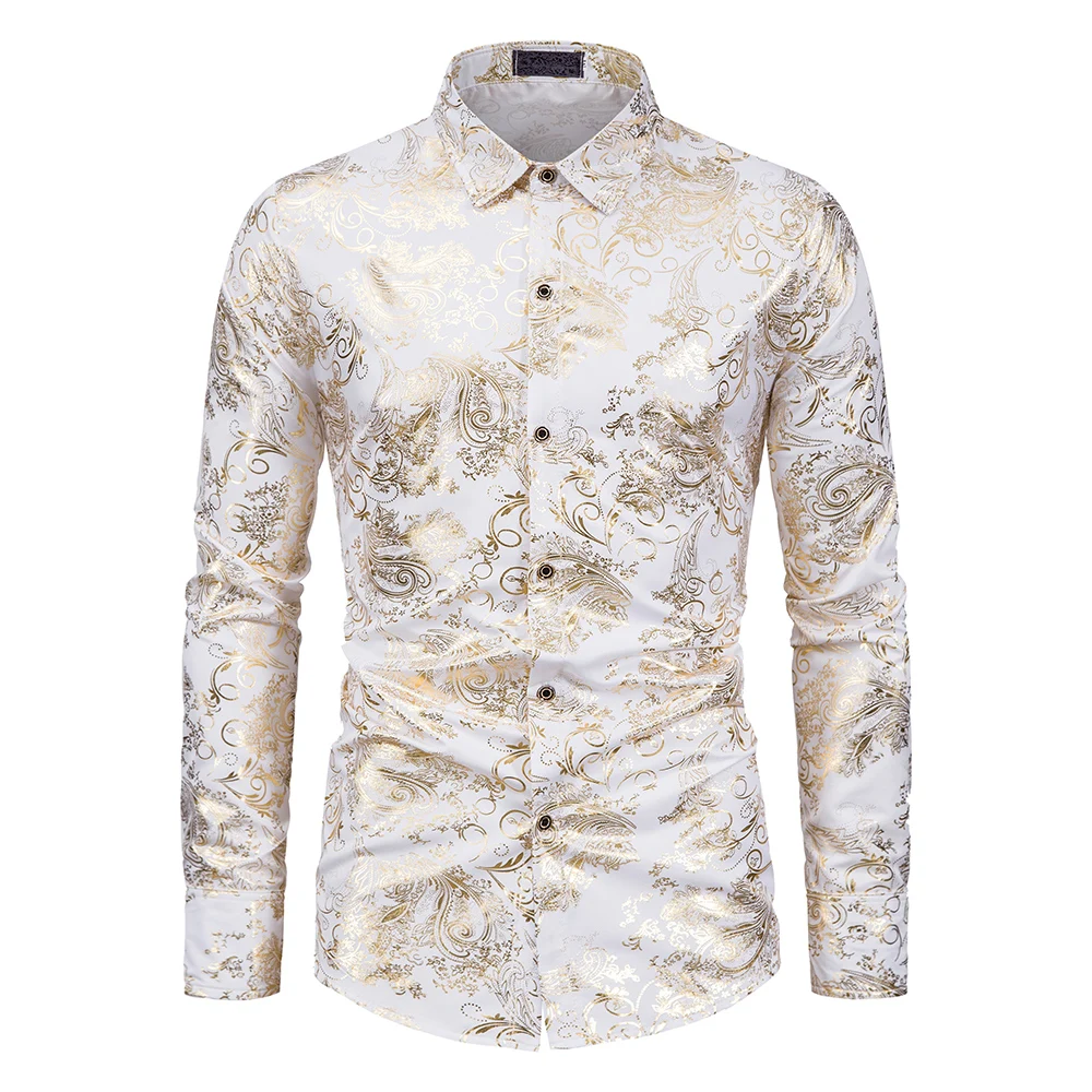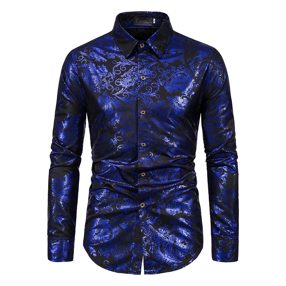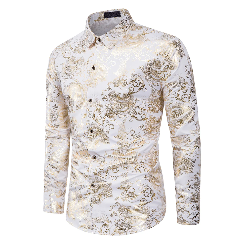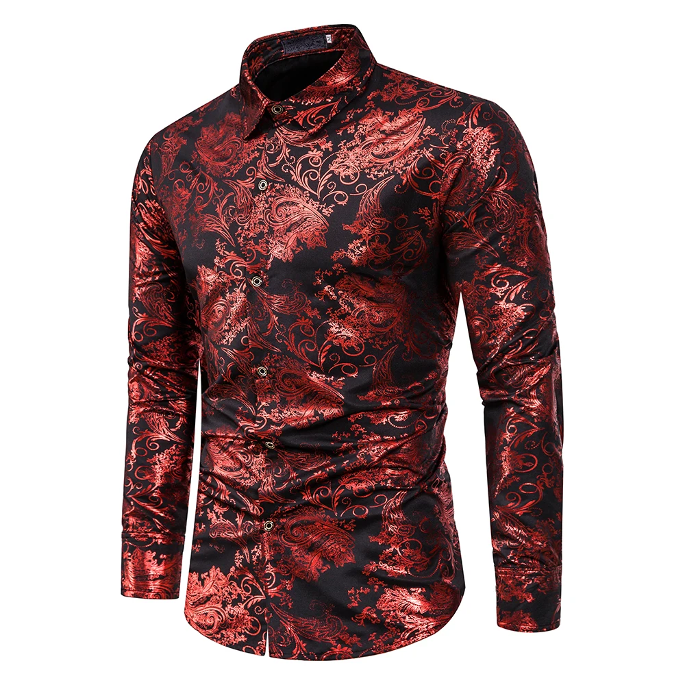 Men's Shirt Flower Printing Leisure Style Men's Long-Sleeved Top Stage Performance Wedding Dinner Party Holiday Gift Men's Shirt
