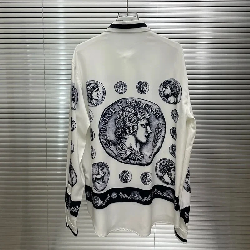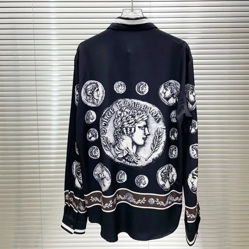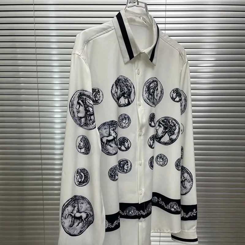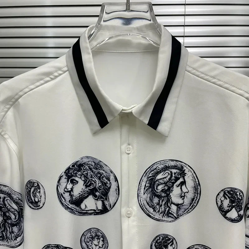 Men's shirt Vintage Character print 2025 Spring / Autumn Loose Version Classic Long-sleeved Lapel Fashion and leisure Top S-5XL