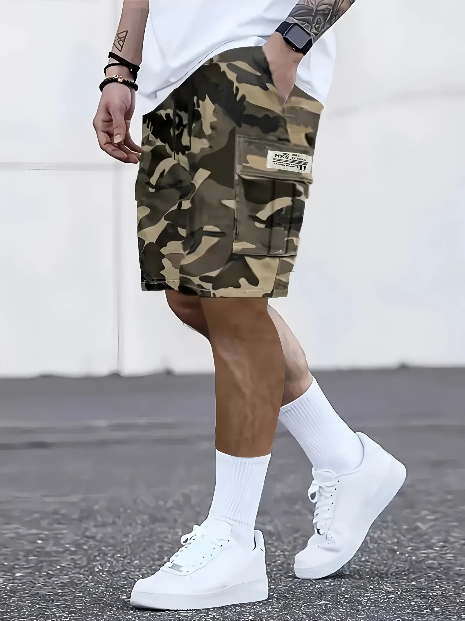 Men's Shorts Summer Casual Jogging Cargo Shorts Loose Multi-pockets Elastic Waist Work Hiking Overalls Short Pants