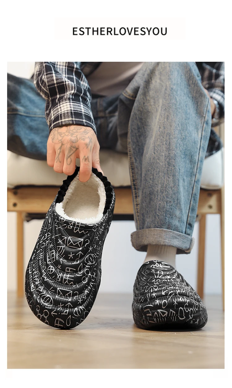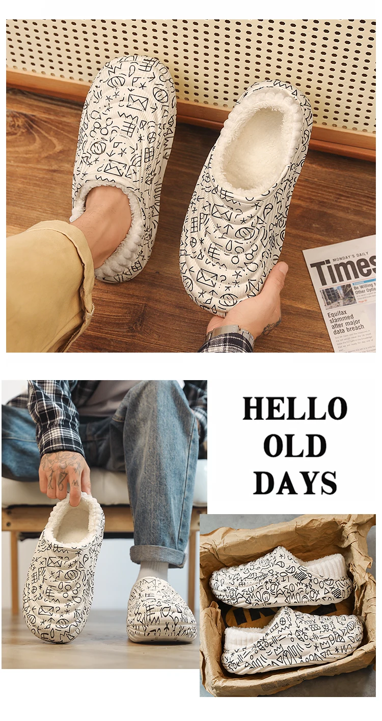 Men's Slippers Shoes for Men Unisex Warm Non-Slip Wear-resistant Thick Bottom Waterproof Add Cotton Heel Covering Fashion New